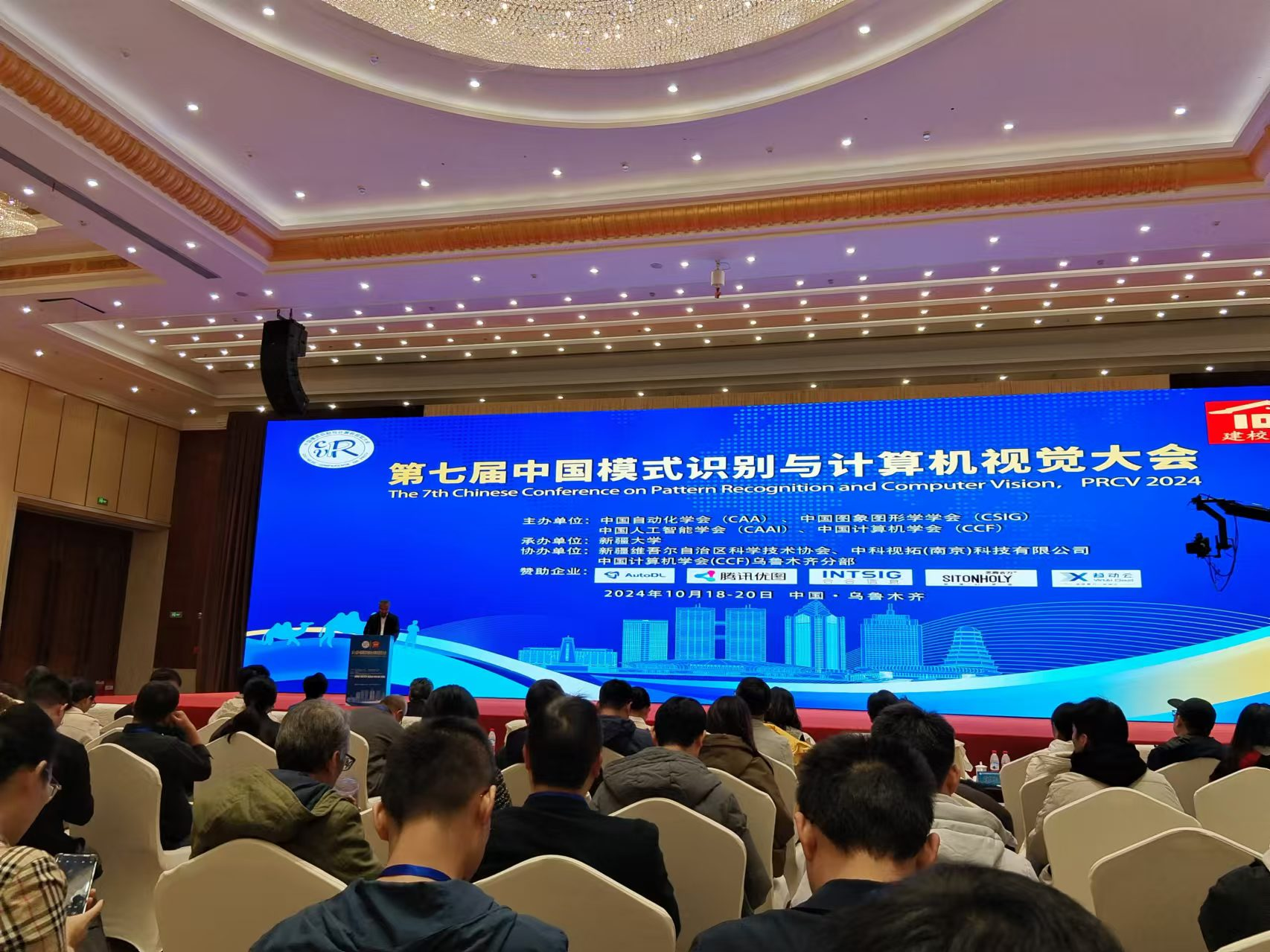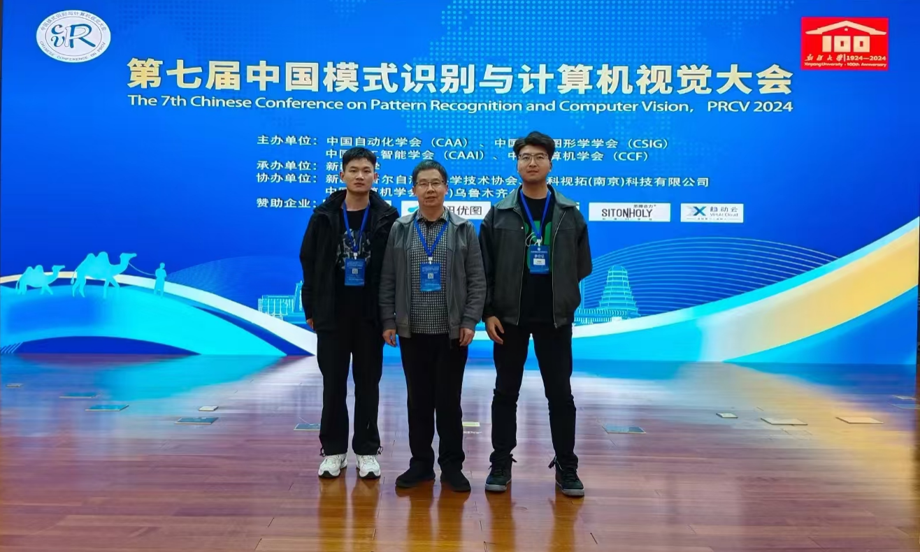 2024年10月18日-20日,第七届中国模式识别与计算机视觉大会(Pattern Recognition and Computer Vision,PRCV)在乌鲁木齐新疆国际会展中心隆重举行。PRCV是国内顶级的模式识别和计算机视觉领域的学术盛会,由中国自动化学会(CAA)、中国图象图形学学会(CSIG)、中国人工智能学会(CAAI)和中国计算机学会(CCF)联合主办,属于CCF-C类会议。本次会议共有1526篇论文投稿,最终录用579篇,录用率为37.9%,共邀请1200多名图像处理领域专家学者参加,分别开设了大会演讲、主题演讲、分组论坛、口头汇报、海报汇报五大板块。我们鲁棒视觉智能感知技术团队共录用计算机视觉领域的学术论文2篇,张凯兵带领两名硕士研究生任陇刚和曹琦智参加了本次会议。