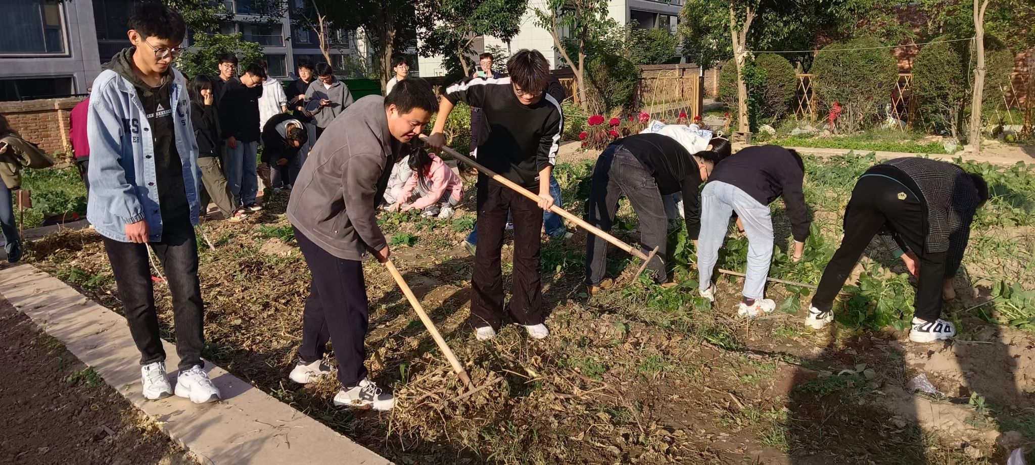 为深入贯彻落实习近平新时代中国特色社会主义思想和党的二十届二中、三中全会精神,切实推进学校统一战线、民族团结进步教育工作的开展,同时加强劳动教育,促进学生德智体美劳全面发展,2024年10月23日下午,9499www威尼斯和马克思主义学院联合举办了“民族团结一家亲,耕读小园同耕耘”——学生民族团结实践暨秋播劳动教育活动,让各民族学生在共同劳动中体会团结的力量,感受中华民族一家亲的浓浓氛围。我们学生工作部(处)副部(处)长李路遥、学生资助中心主任朱成功应邀参加活动,计算机学院党委副书记赵勇进、辅导员和两个学院20余名各民族学生一同参加了活动。