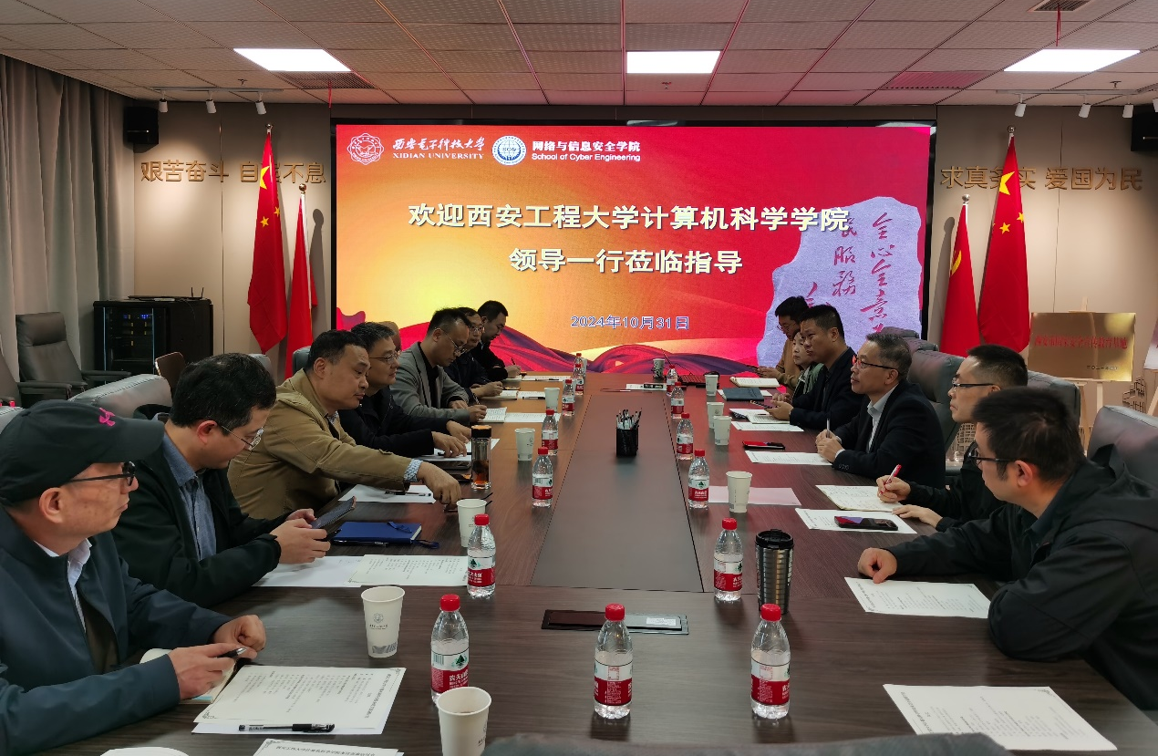 调研首日,西安电子科技大学网络与信息安全学院李晖院长首先对调研组的到来表示热烈欢迎,该院杨超副院长详尽介绍了学院在学科建设、师资队伍、本科教学等方面的发展历程,他还特别强调了学院在密码学、网络安全、信息对抗等前沿领域人才培养的积极探索与实践,该院信息安全系吕锡香主任分享了教学改革的新思路、课程设置的创新举措,以及实验室建设的宝贵经验。双方还围绕网络安全学院的建设经验、教学实验平台的构建、本科生培养体系的完善等核心话题开展了深入交流。最后,双方结合我们实际情况,对制定既符合社会需求又促进学生全面发展的本科培养方案进行了富有成效的探讨。