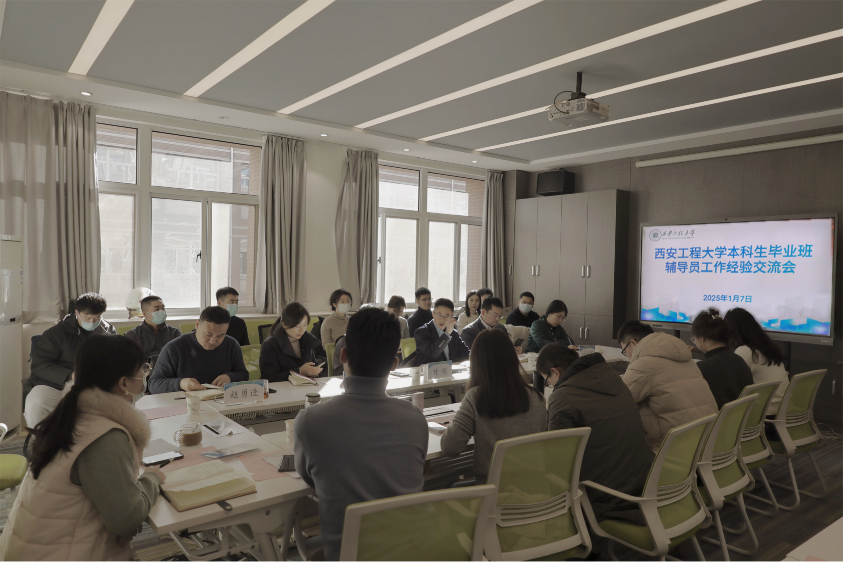 会上,计算机学院2024级本科生辅导员左温慧和机电学院2024级本科生辅导员李菁菁结合自身工作实际,围绕毕业生学业帮扶、班级管理、就业指导、心理健康教育等方面分享了她们的经验和做法。其中,左温慧以“一生一策展担当,以身为范传薪火——用心用爱助力学生顺利毕业”为主题,介绍了在学业关注、就业帮扶、心理关怀、思想引领等工作中的具体举措,并附以具体案例加以说明;李菁菁以“用心浇灌、同心同行,与学生共成长”为主题,介绍了自己在毕业生思想政治教育、管理服务、学业促进、疫情防控工作等方面获得的经验和心得。随后,参会辅导员就毕业班学生学业问题、日常管理、就业指导等方面的工作进行了讨论。大家表示将以更加饱满的热情和更加扎实的工作作风,做好毕业生教育管理服务工作。