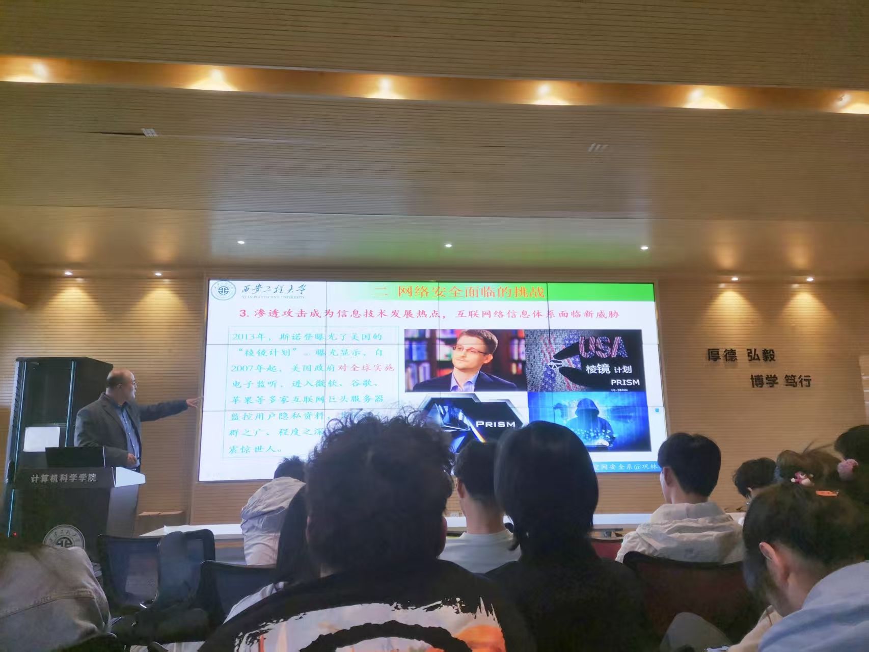 活动由网络系副教授、硕士生导师巩林明主讲。巩林明副教授在网络安全领域有着丰富的研究经验,他深入浅出地讲解了网络安全在当前社会中的重要性和面临的挑战。通过生动的案例和详实的数据,巩林明副教授向与会者展示了网络安全问题的复杂性和紧迫性。在讲座中,巩林明副教授特别提到,渗透攻击已成为信息技术发展的热点问题。他强调,随着互联网路径总体布局的逐渐成熟,网络安全威胁日益增多。如何有效应对这些挑战,已成为全社会关注的焦点。他呼吁师生们增强网络安全意识,掌握基本的网络安全防护技能。