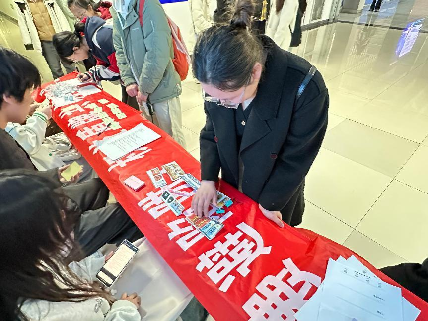 活动现场精心构建五大消费维权实景课堂:在"鉴真行动"展区,学生化身"商标侦查员",通过专业设备对比"康师傅"与"康帅傅"包装差异,细致观察字体弧度、商标编码等鉴别要点;"条款破局者"环节设置租房、网购等6类模拟合同,参与者需用红笔划掉"最终解释权归商家所有"等霸王条款,并引用《民法典》第497条进行反驳;"价签显微镜"区域陈列12种价格欺诈案例,学生手持放大镜揭露"第二件半价"实则抬高原价等营销套路;"隐私哨兵"体验区扫码即现过度索权提示,学生通过标记违规问卷学习《个人信息保护法》核心条款;"反强迫行动组"模拟设置餐饮店强制消费场景,学生需完整拨打12315热线完成举证陈述。各关卡配备法律专业研究生志愿者,实时讲解《消费者权益保护法》第55条"退一赔三"等实用条款,并为通关者颁发刻有"维权先锋"字样的盾牌形金属书签。