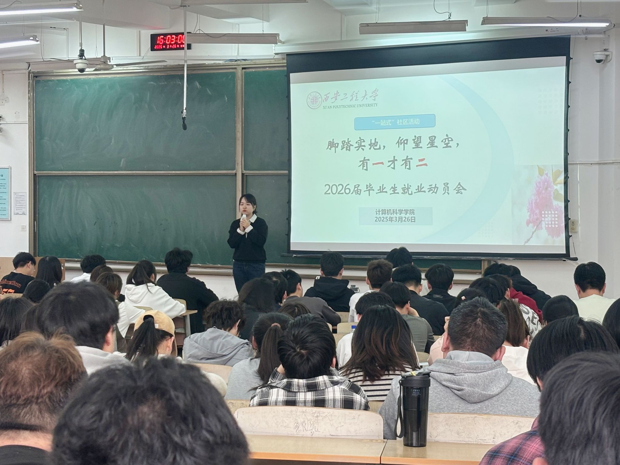 为扎实推进毕业生就业工作,唤醒学生就业意识,切实将“我为师生办实事”实践活动落到实处,3月26日至28日,9499www威尼斯依托“一站式”学生社区综合服务平台,在临潼校区教学楼分批次召开2026届本科毕业生就业动员大会。学院党委副书记赵勇进、学工办主任张苹、2026届毕业班辅导员左温慧及全体2026届毕业生共同参会。