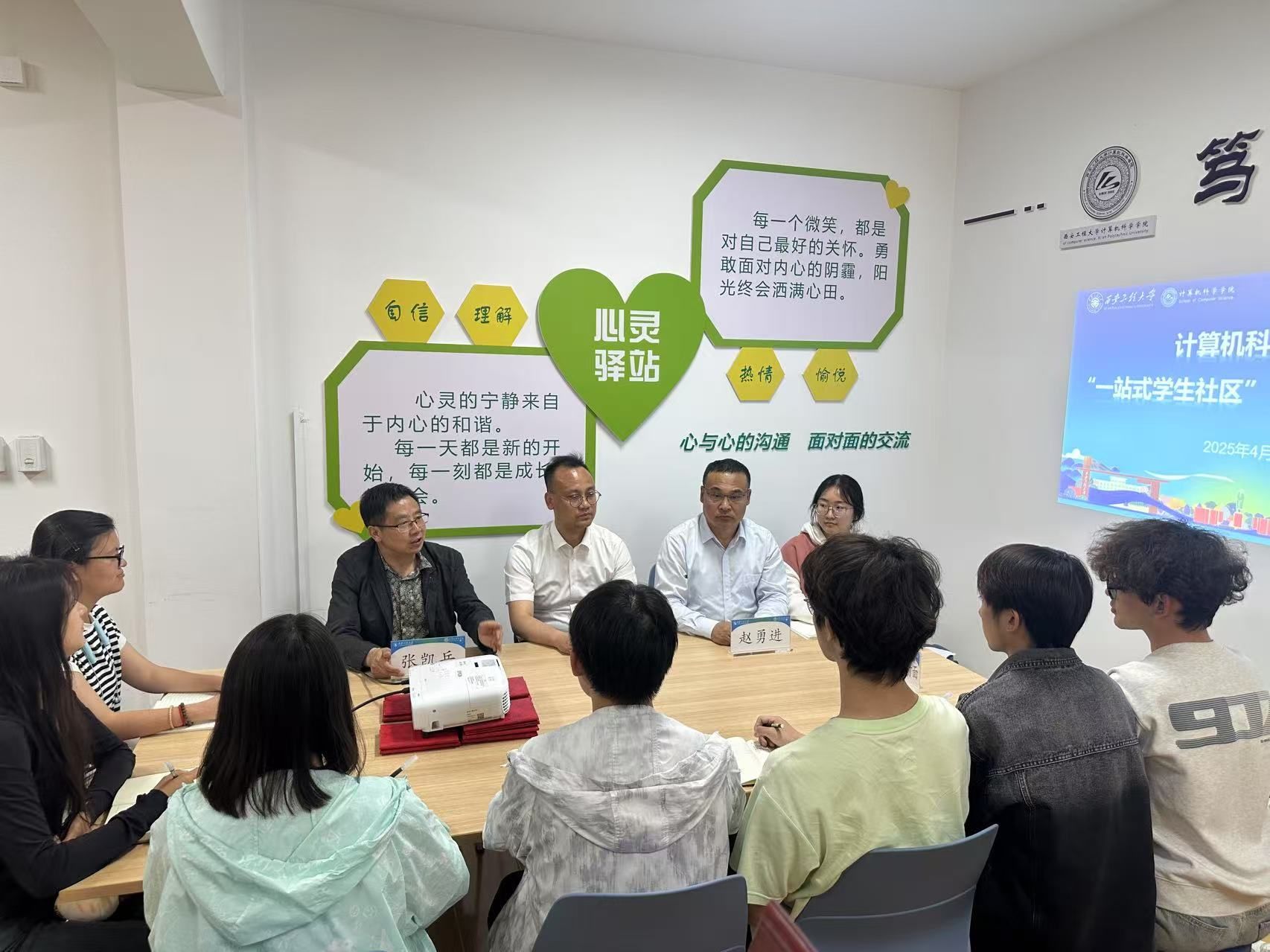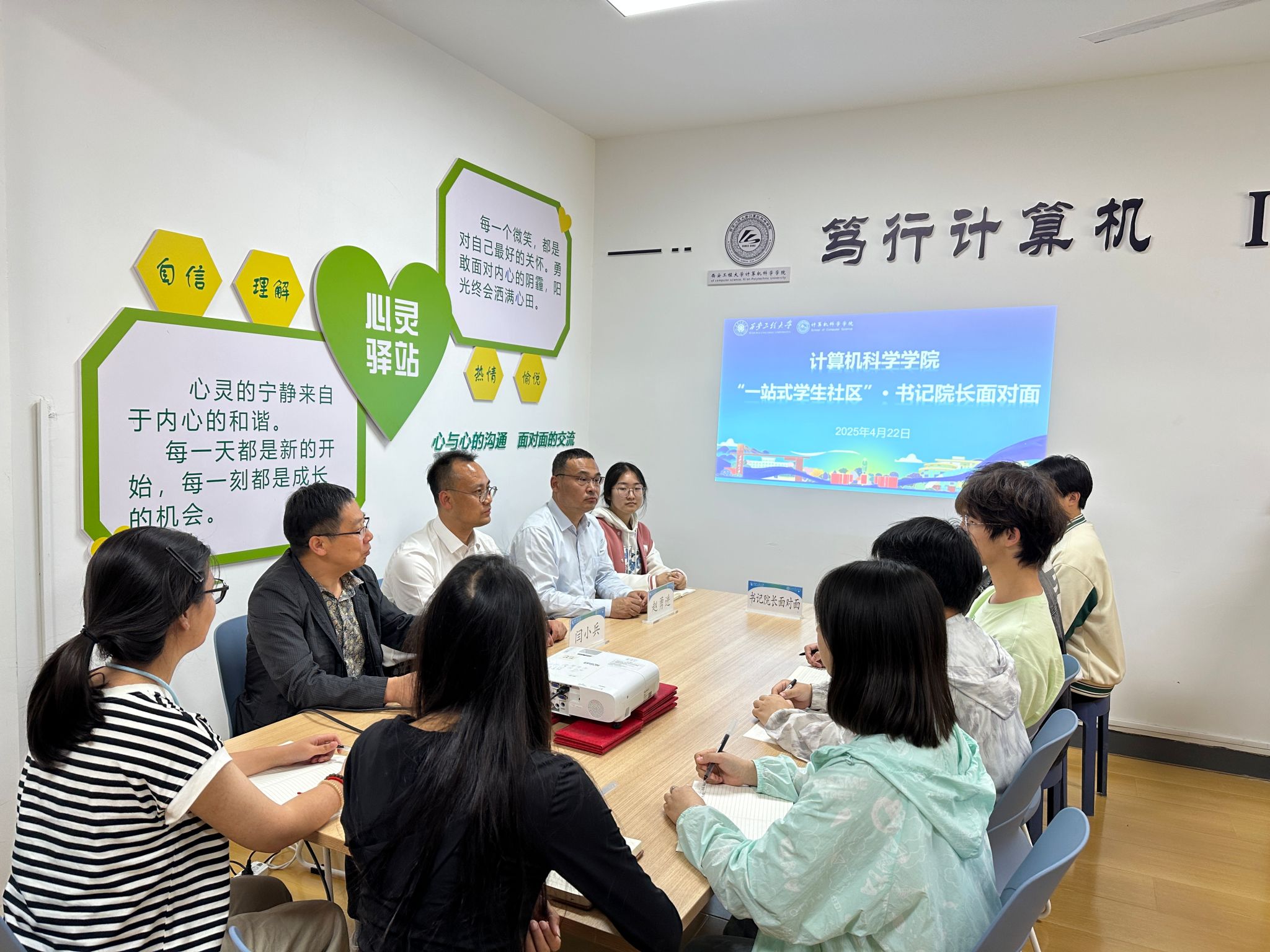 为深化“一站式” 学生社区建设,畅通师生沟通渠道,倾听学生心声,帮助学生解决思想困惑,2025年4月22日下午,9499www威尼斯党委副书记闫小兵、副院长张凯兵、副书记赵勇进一行走进2号楼“一站式”学生社区,与学生代表围坐一堂,开展2025年第一次“书记院长面对面”专题交流活动。活动聚焦学生成长发展需求,围绕学业规划、专业竞赛、校园生活等话题展开深入探讨,搭建起师生共建共享的育人桥梁。