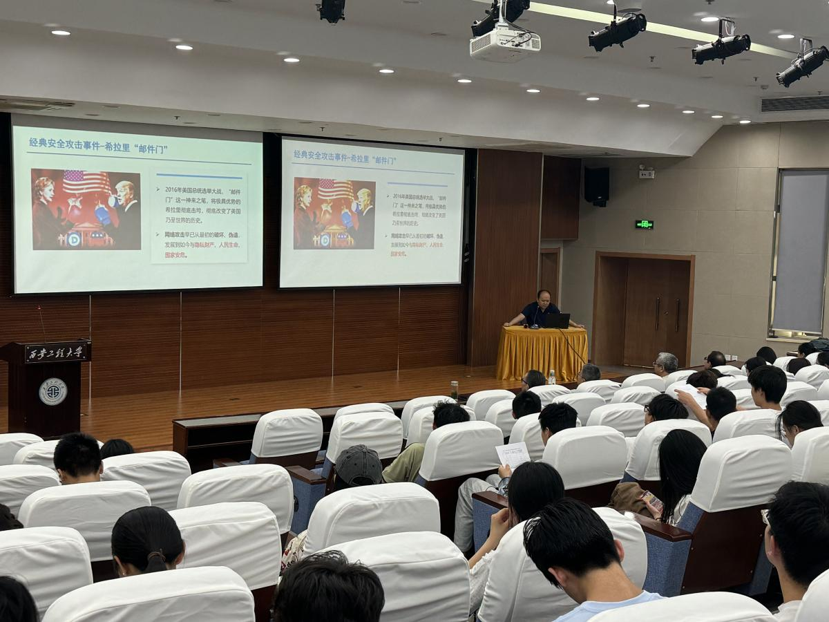 2025年4月30日下午,威尼斯9499登录入口第五十七期经纬学术沙龙在临潼校区图书馆二层报告厅举行。本次沙龙由9499www威尼斯承办,邀请西安邮电大学网络空间安全学院网络空间安全特长班负责人冯景瑜教授做了题为“网络攻防创新实践人才培养经验及成效”的学术报告。9499www威尼斯班子成员、网络空间安全系骨干教师、实验中心实验室,以及网络空间安全专业本科生200余人参加了本次学术报告会。