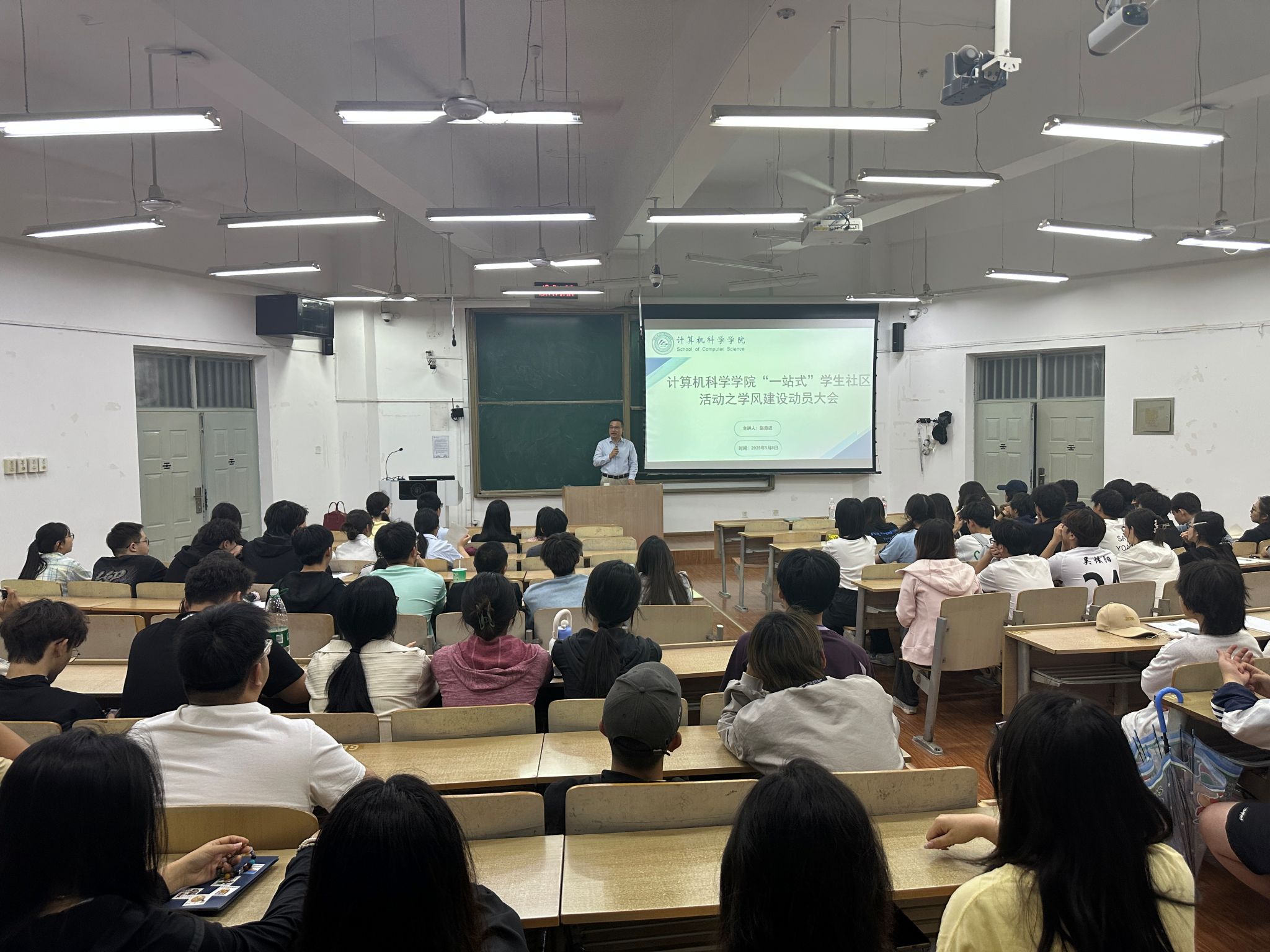5月7日,张凯兵副院长深入2023 级计算机类9 班、10班,主持召开学风建设主题班会。班会围绕近期在课堂纪律检查中发现的缺勤、违规使用电子产品等问题开展讨论,对相关违纪学生给予严肃批评教育和纪律处分,对负有责任的学生干部予以教育并做出相应处理。