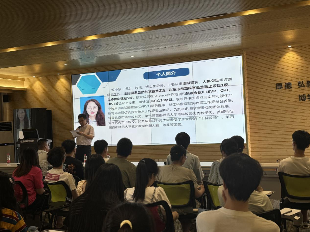 2025年6月20日上午10:00至12:00,9499www威尼斯在614报告厅成功举办专题学术报告会。首都师范大学教授谭小慧博士受邀作题为《虚拟现实中的人机交互研究》的学术报告。学院副院长张凯兵教授及全体研究生参加。