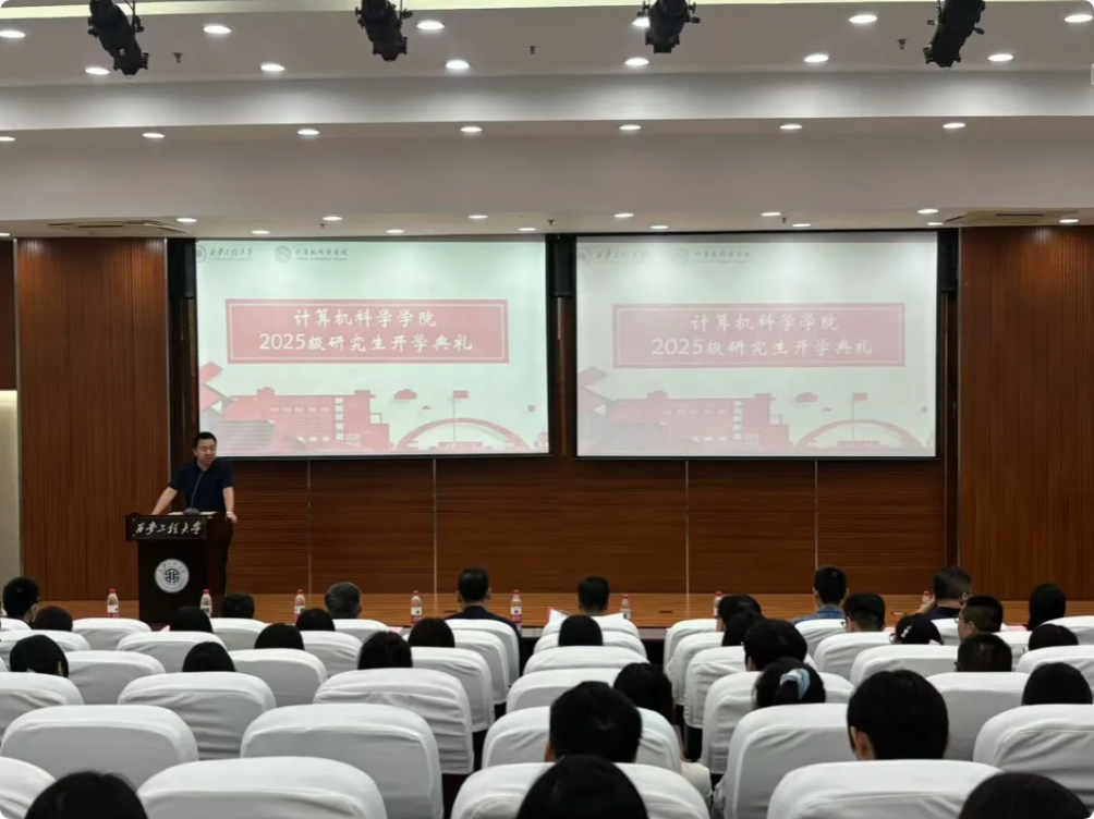 随后,老生代表刘毅晨在发言中鼓励新同学们要设定高标准,始终追求卓越,在未来的研究生生涯中保持对自己潜力的信心,勇敢面对挑战与机遇,只有通过坚持不懈的努力,才能收获丰硕成果。接着,新生代表曹志强同学在发言中表示,作为2025级新生,大家肩负着时代赋予的责任与使命,必须携手共进,奋力前行,争取在学术与科研中实现自我价值,为国家科技发展与社会进步贡献自己的智慧与力量。
