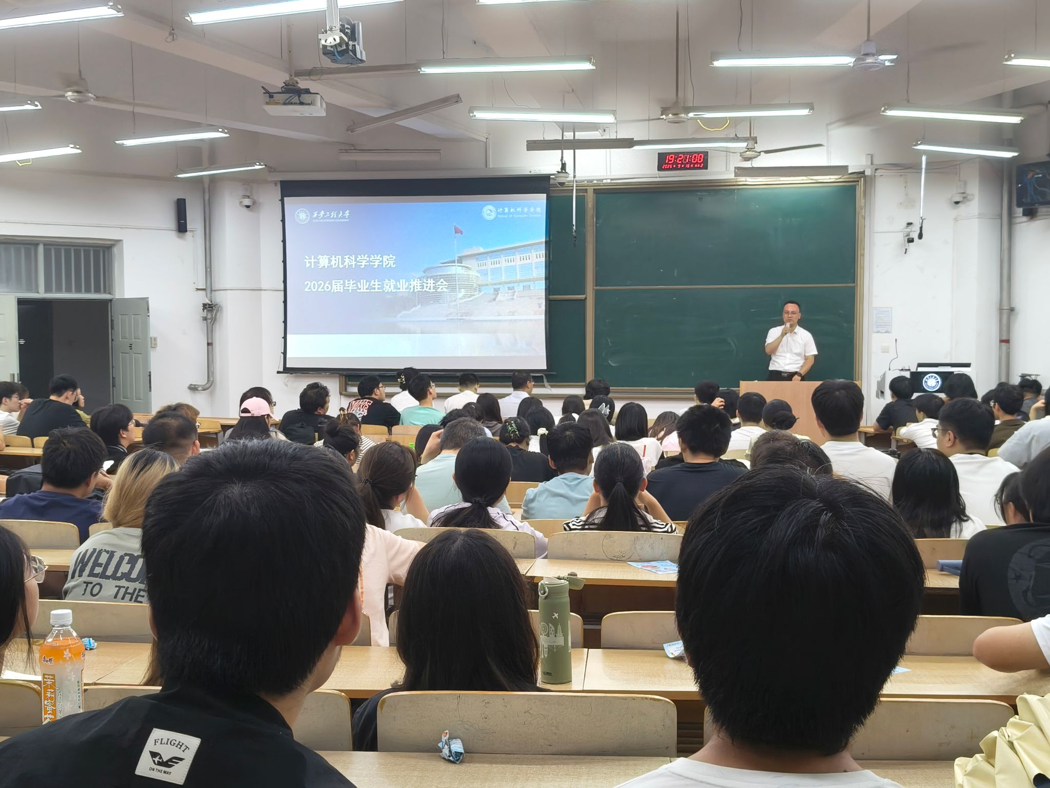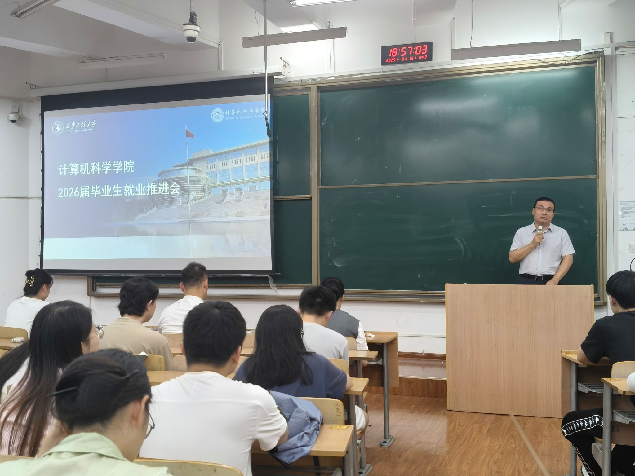 接着,赵勇进就毕业生就业与升学考公中需要注意的主要问题进行了宣讲,他指出,2026届计算机类专业就业呈现新兴领域人才缺口扩大、传统软件开发岗位需求疲弱、整体薪资同比下降、行业技术迭代加速致实践能力提升压力增大、就业范围向智能制造突破等特点。他要求毕业生具备扎实技能与实践实习经历,升学考公群体应遵循“两条腿走路”原则,依真题模拟成绩规划备考与秋招侧重,同时提醒学生要尽量在离校前参加企业校招签订就业三方协议,要把握求职主动权。