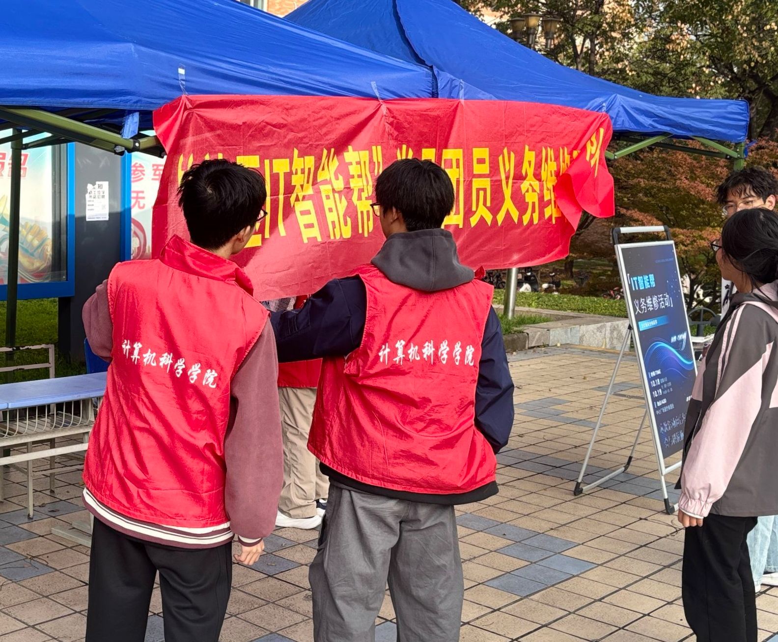 2025年10月18日至19日,我们临潼校区中心广场暖意涌动——“9499www威尼斯社区IT智能帮”党员团员义务维修服务队在此开启暖心公益服务。活动以“服务师生、实践育人”为核心,既通过IT设备维修展现学生在学生社区建设中的主体力量,更以“学以致用、以用促学”为路径,让志愿服务精神与雷锋精神交响融合,帮助学院青年志愿者在解难题、办实事中同步提升思想境界与综合能力。