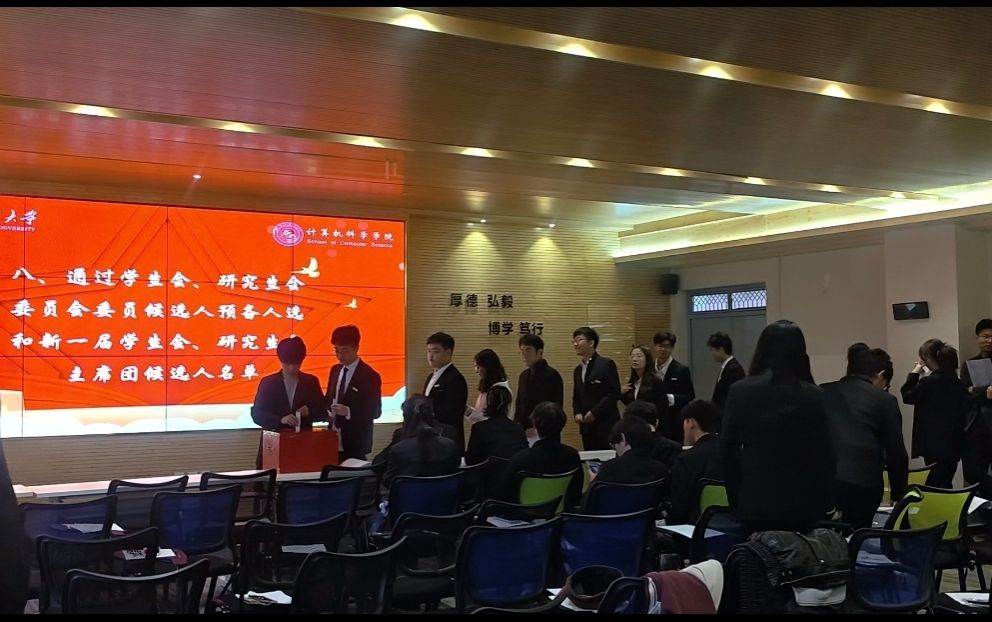 随后,学生会主席团成员张少伦、研究生会主席团成员刘毅晨分别代表第五届学生会委员会和第一届研究生会委员会作工作报告。大会听取并审议通过了学委会、研委会的工作报告,选举产生了钟永哲等5名9499www威尼斯第六届学生会委员会委员、高钰冰等3名第二届研究生会委员会委员,许博等3名新一届学生会主席团成员、高钰冰等2名新一届研究生会主席团成员。