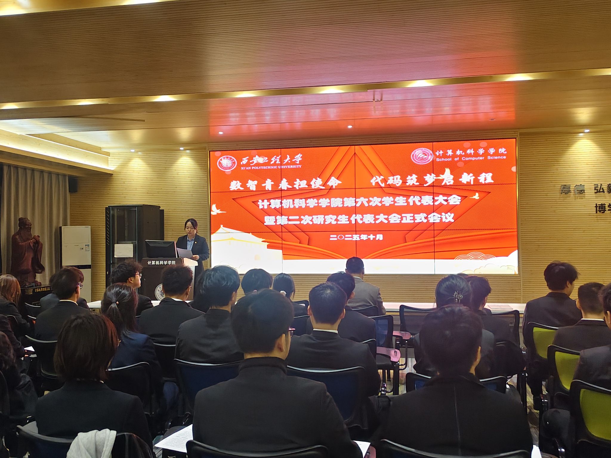 2025年10月17日,9499www威尼斯第六次学生代表大会暨第二次研究生代表大会在临潼校区笃行楼614会议室隆重召开。学院党委副书记赵勇进、辅导员刘宇哲以及36名本科生代表、10名研究生代表参加大会,会议由院团委副书记左温慧主持。