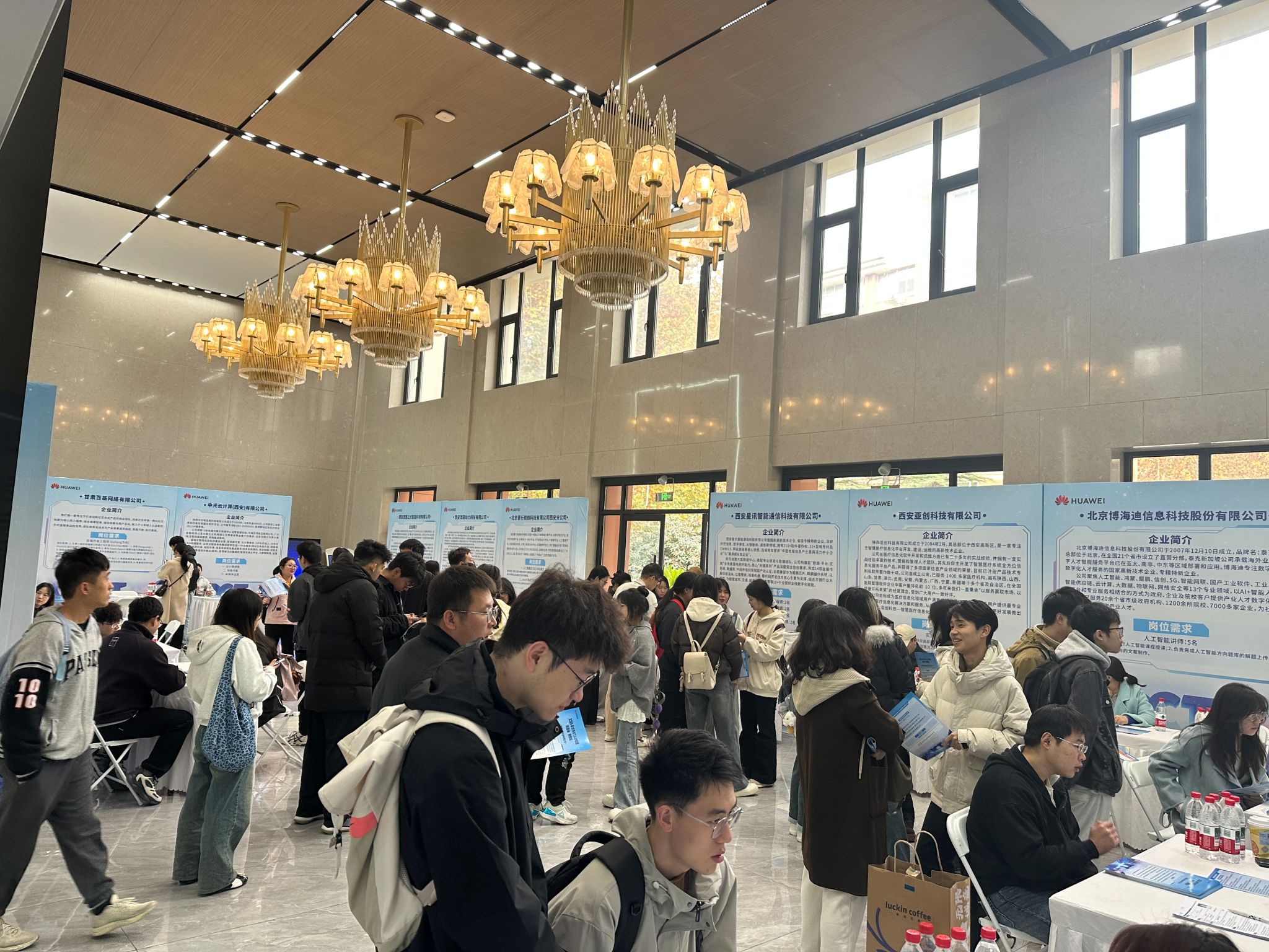 双选会现场人头攒动、气氛热烈,32家华为生态链核心企业及本地ICT龙头企业精心布置展位,通过宣传视频、岗位手册、互动咨询等形式,全面展示企业发展前景与招聘需求。本次双选会共发布软件开发、网络运维、数据运营、智能终端调试等各类岗位200余个,覆盖互联网、通信、人工智能等多个领域,吸引了威尼斯9499登录入口、西安理工大学、西安科技大学等省内多所高校的500余名毕业生或实习生。