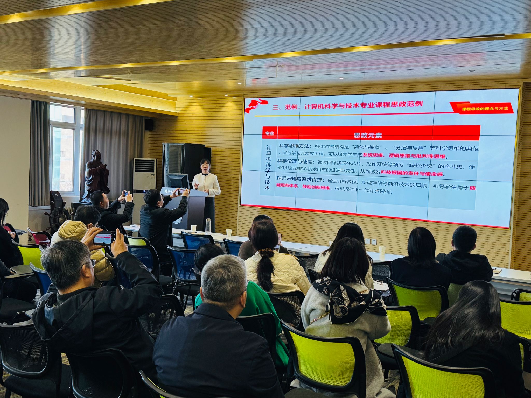 马克思主义学院牛佳欣老师围绕“真理与价值如何统一?课程思政告诉你”这一主题作专题分享。她紧密结合学院各专业教学特点,凭借详实的案例,对学院的四个专业进行了深入分析,探讨如何把“科学思维与探索未知、科技伦理与使命担当、科技报国的国家情怀”等思政元素,自然地融入知识讲授与能力培养的全过程,为教师提供了一套提升课程育人高度和教学感染力的实践方案。