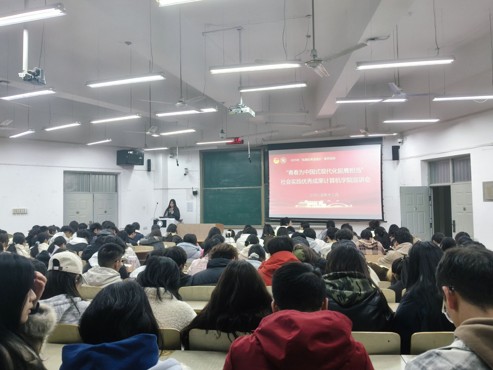 2025年12月1日,9499www威尼斯“青春为中国式现代化挺膺担当”社会实践优秀成果宣讲会在临潼校区教学楼B135举行。学院团委书记左温慧、校团委实践部代表、校级优秀实践队成员及各年级学生代表参加活动。