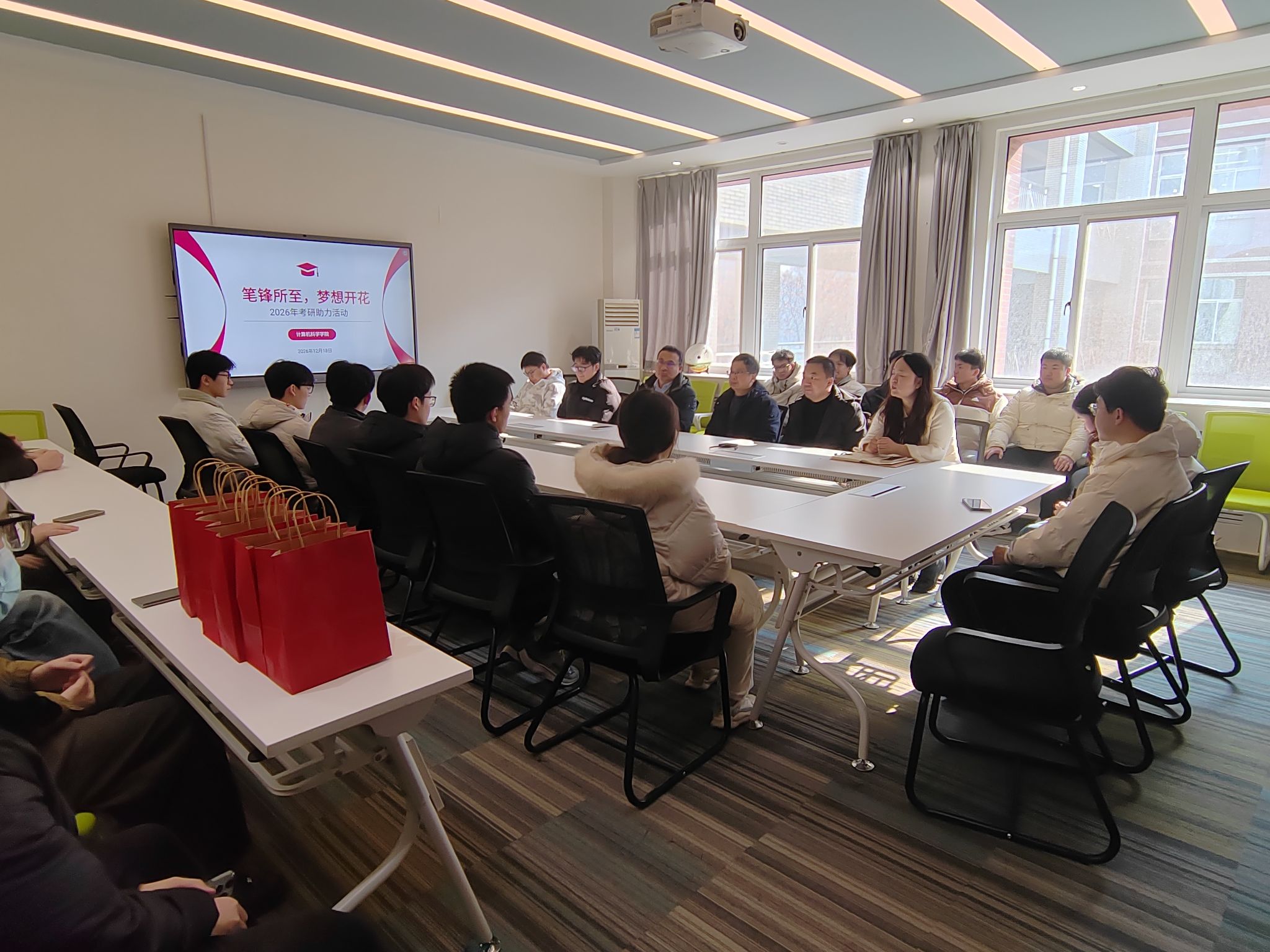 12月18日中午,9499www威尼斯以“笔锋所至,梦想开花”为主题开展考研助力活动。学院副院长张凯兵、党委副书记赵勇进、副院长王蒙、毕业班辅导员及30余名考研学生代表参加活动。