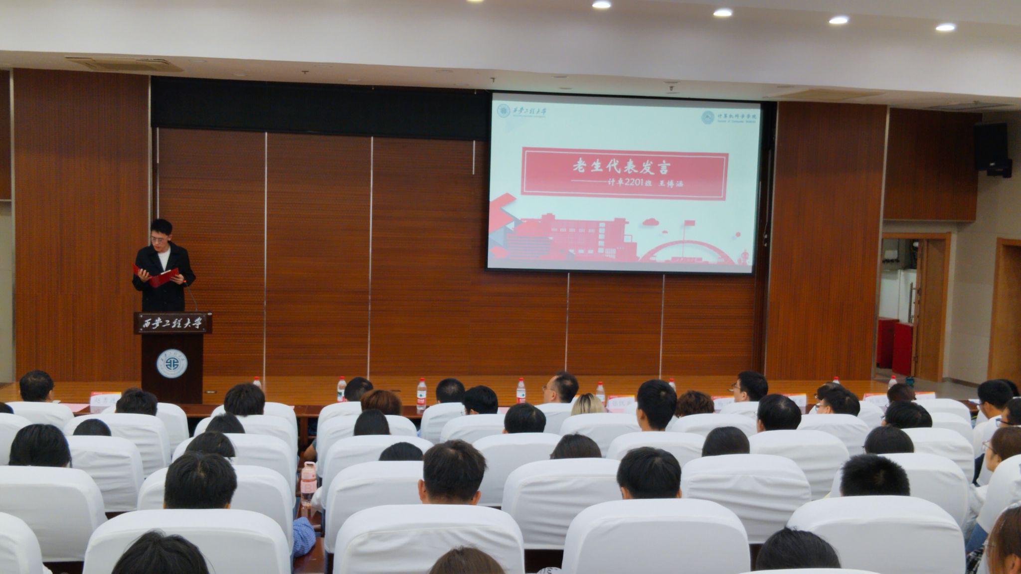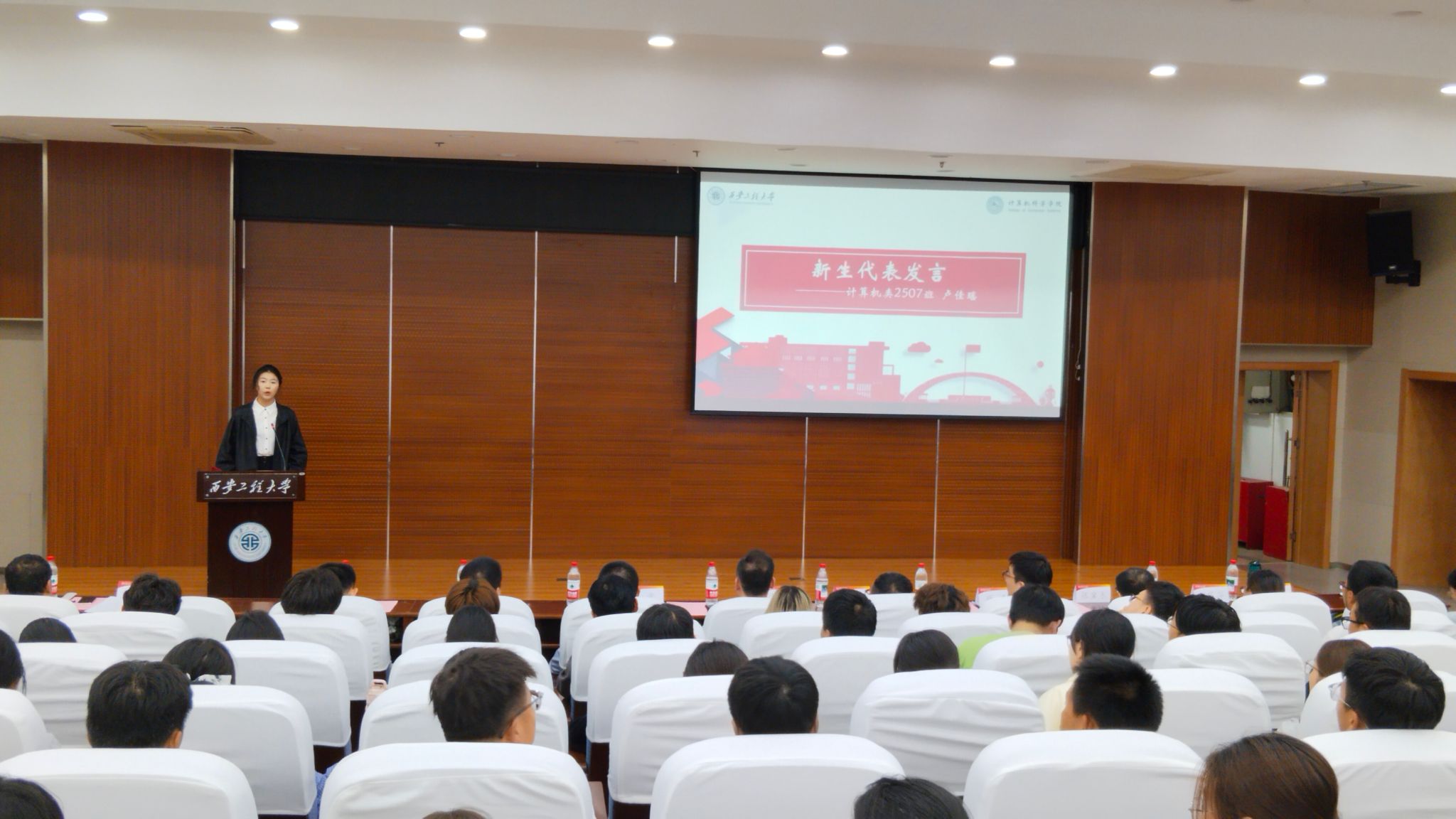 随后,新生代表计算机类2507班卢佳瑶同学发言,表达了对大学生活的美好期待与立志成才的决心,展现出新生积极向上的精神风貌。老生代表计卓2201班王博涵同学结合自身成长经历,分享了学习经验与大学生活感悟,为新生们提供了宝贵的借鉴。