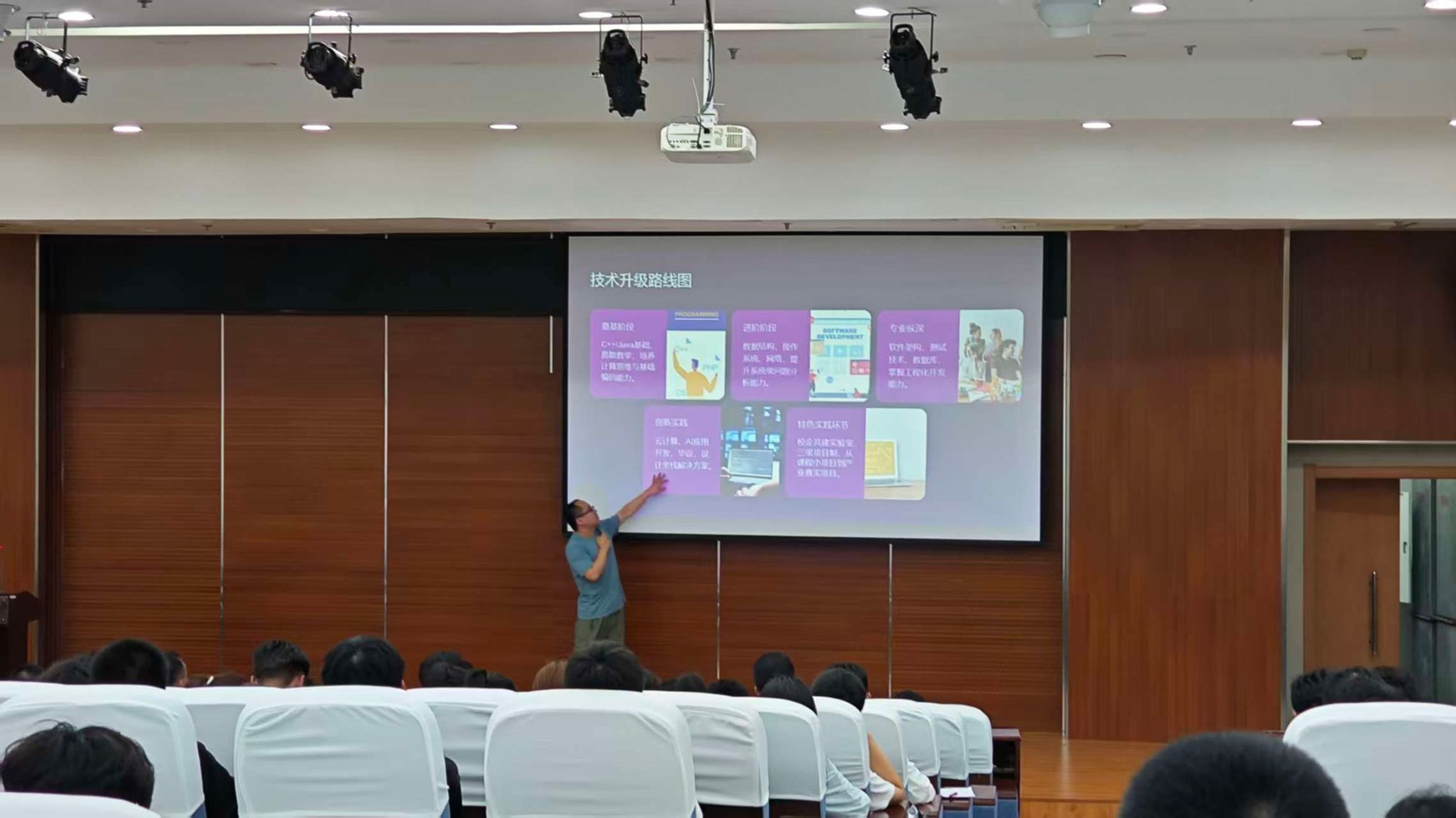 典礼结束后,大会进入专题宣讲环节。副院长王蒙为新生详细解读了学籍管理规定,帮助同学们明晰大学期间的学习要求与规章制度,为新生的大学生活规划提供了清晰的指引。各系主任介绍专业特色、发展前景及学习重点,着重强调了基础理论学习和创新能力培养的重要性,激发了同学们的浓厚兴趣,让同学们对该专业的广阔发展前景充满信心。整场大会内容充实、秩序井然,既增强了新生的归属感和认同感,也为他们顺利融入大学学习生活奠定了坚实基础。新生们纷纷表示,将不负师长期望,脚踏实地、锐意进取,在数字时代的广阔舞台上书写无愧于时代的青春篇章。(撰稿:张苹 审稿:赵勇进、闫小兵)