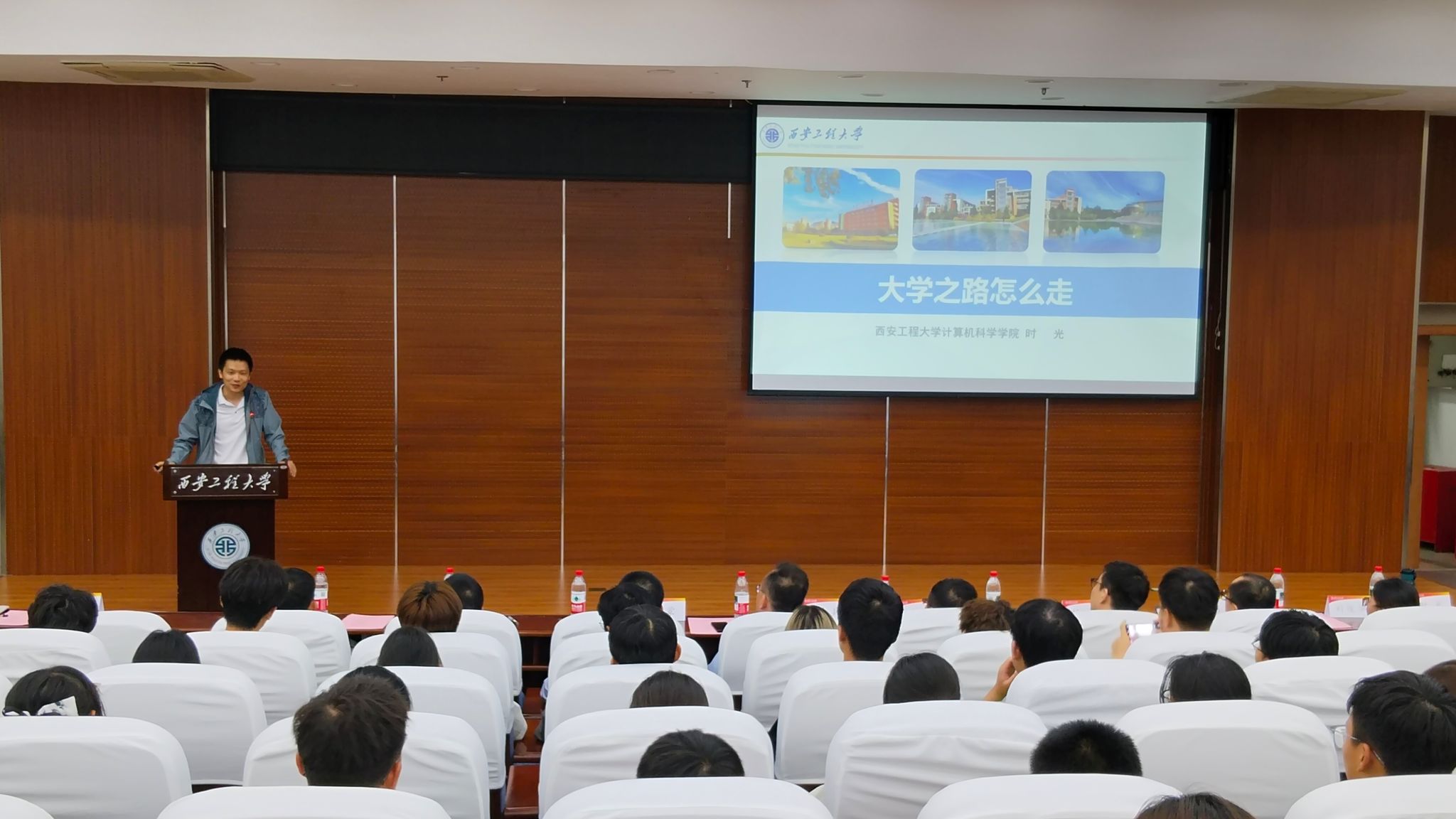 接着,教师代表时光博士围绕“大学之路应该如何走”这一主题展开精彩分享。他深入剖析了大学学习模式相较于初高中的显著区别,强调了大学路径选择的多元化。并向新生们送上了不同路径规划的一些建议:如选择就业应注重提升综合能力与实习经验,考研需尽早确立目标并重视相关课程的学习,保研或出国则需优异成绩和外语能力。最后,他鼓励新生始终保持探索热情,脚踏实地学习、积极投身实践,为新生照亮了大学前行的道路。