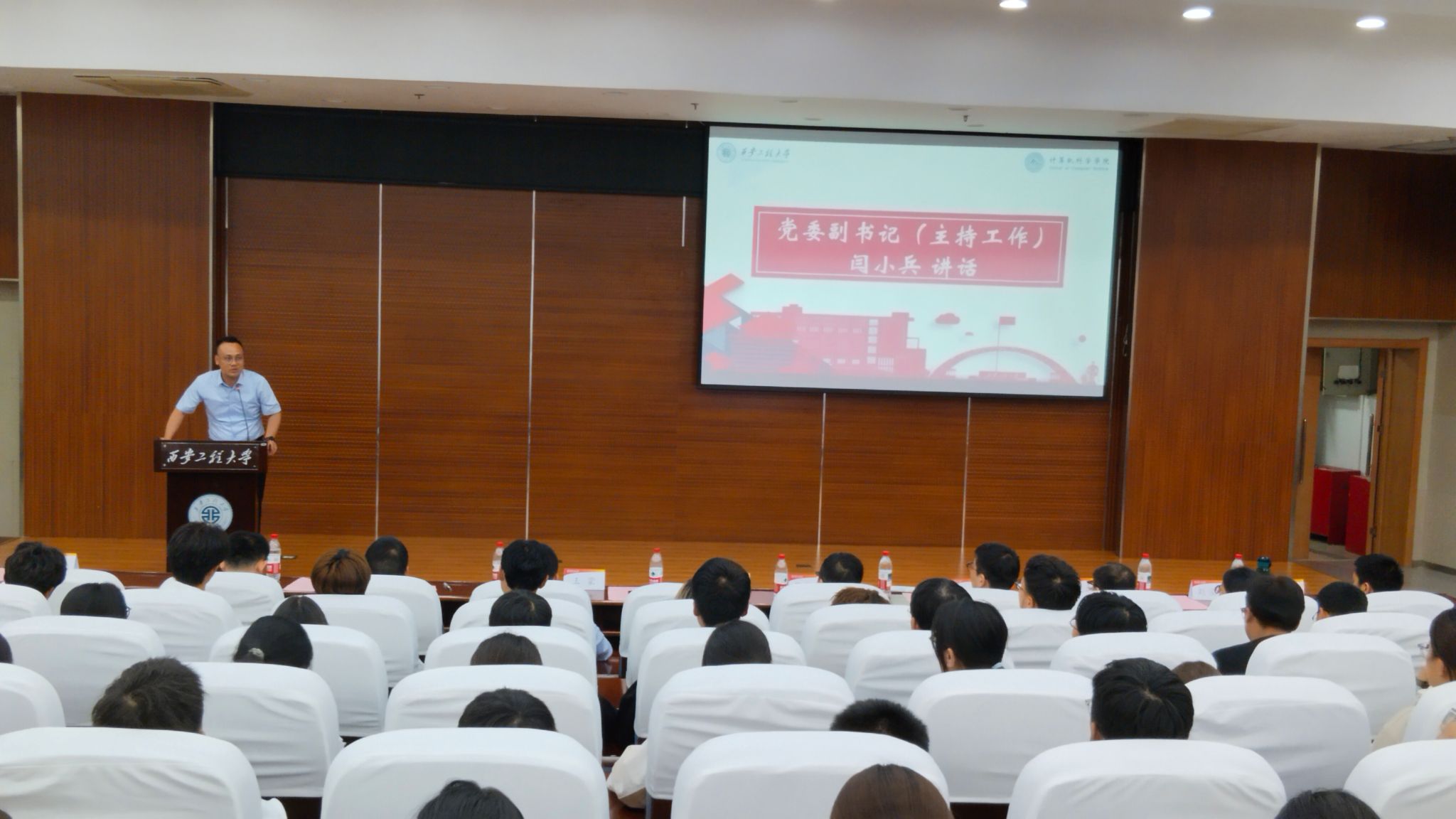 9月17日下午,9499www威尼斯在临潼校区图书馆二楼报告厅召开2025级本科生开学典礼暨新生入学教育大会。学院副院长张凯兵,党委副书记闫小兵、赵勇进,副院长王蒙、各系主任、专业教师代表、全体辅导员以及2025级全体新生参加会议。会议由党委副书记赵勇进主持。