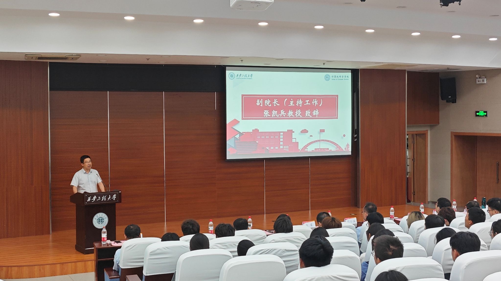大会伊始,张凯兵教授致辞,他代表学院全体师生,向新加入的莘莘学子致以最热烈的欢迎。随后,他以“筑梦、追梦、圆梦”为核心主题,向新生们提出了三点殷切期望:一是锚定方向,夯实专业根基,广泛涉猎,明确人生目标;二是砥砺前行,面对技术快速更新与挑战,保持坚韧不拔,勇于探索,不怕犯错;三是践行知行合一,勇担时代使命,将个人梦想融入国家发展的洪流中,紧扣时代脉搏,将技术创新转化为推动社会进步的强劲动力,并衷心祝愿同学们能以梦为马,不负青春韶华,学有所成,梦想璀璨照进现实。