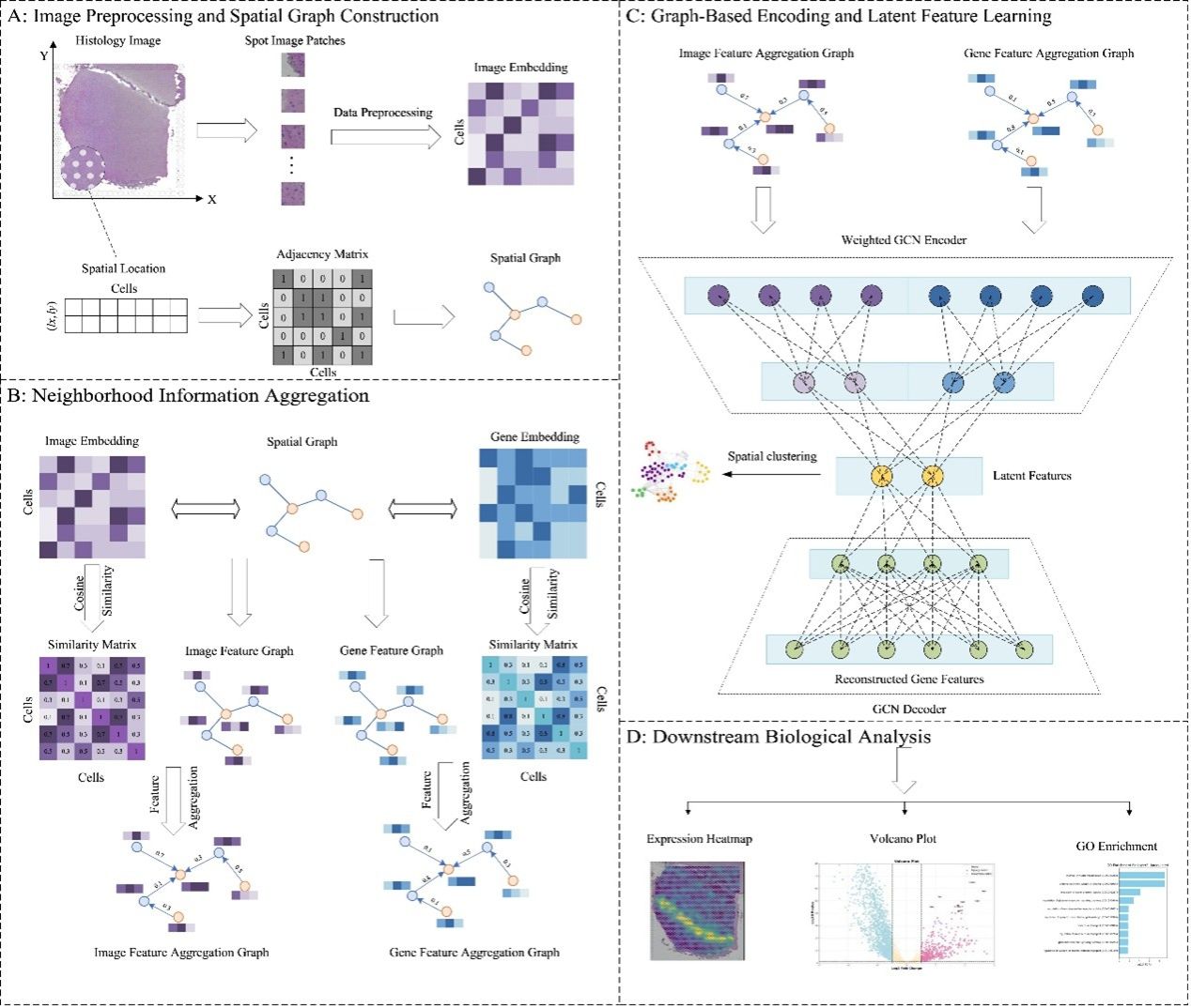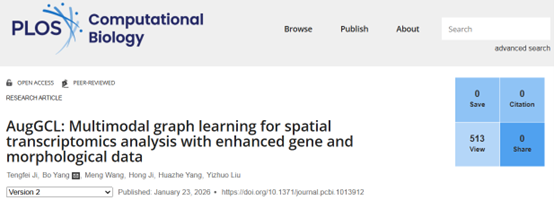 近日,9499www威尼斯智能分析与决策科研团队在单细胞空间转录组学研究方向取得重要进展。由杨博老师指导,2023级硕士研究生姬腾飞同学完成的学术论文《AugGCL: Multimodal graph learning for spatial transcriptomics analysis with enhanced gene and morphological data》在计算生物学国际权威期刊《PLOS Computational Biology》(中科院SCI二区期刊、中国计算机学会推荐的交叉领域B类期刊)上发表。