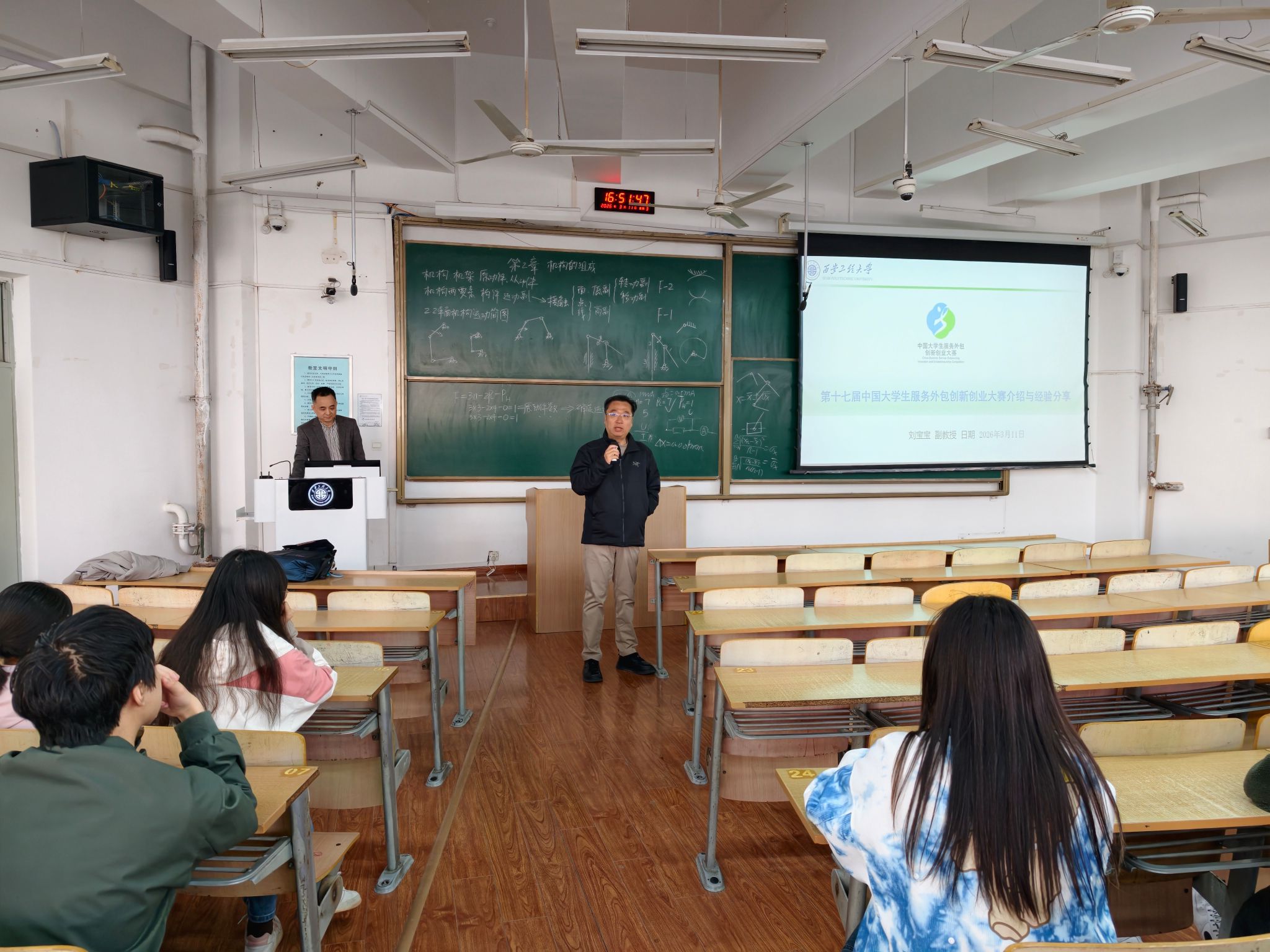 3月17日下午,9499www威尼斯特邀仇涵副教授、刘宝宝副教授开展第十七届中国大学生服务外包创新创业大赛专题宣讲会,分年级为全院学生系统解读赛事细则、精准指引参赛方向,助力学生以赛促学、以赛促创、以赛促练。