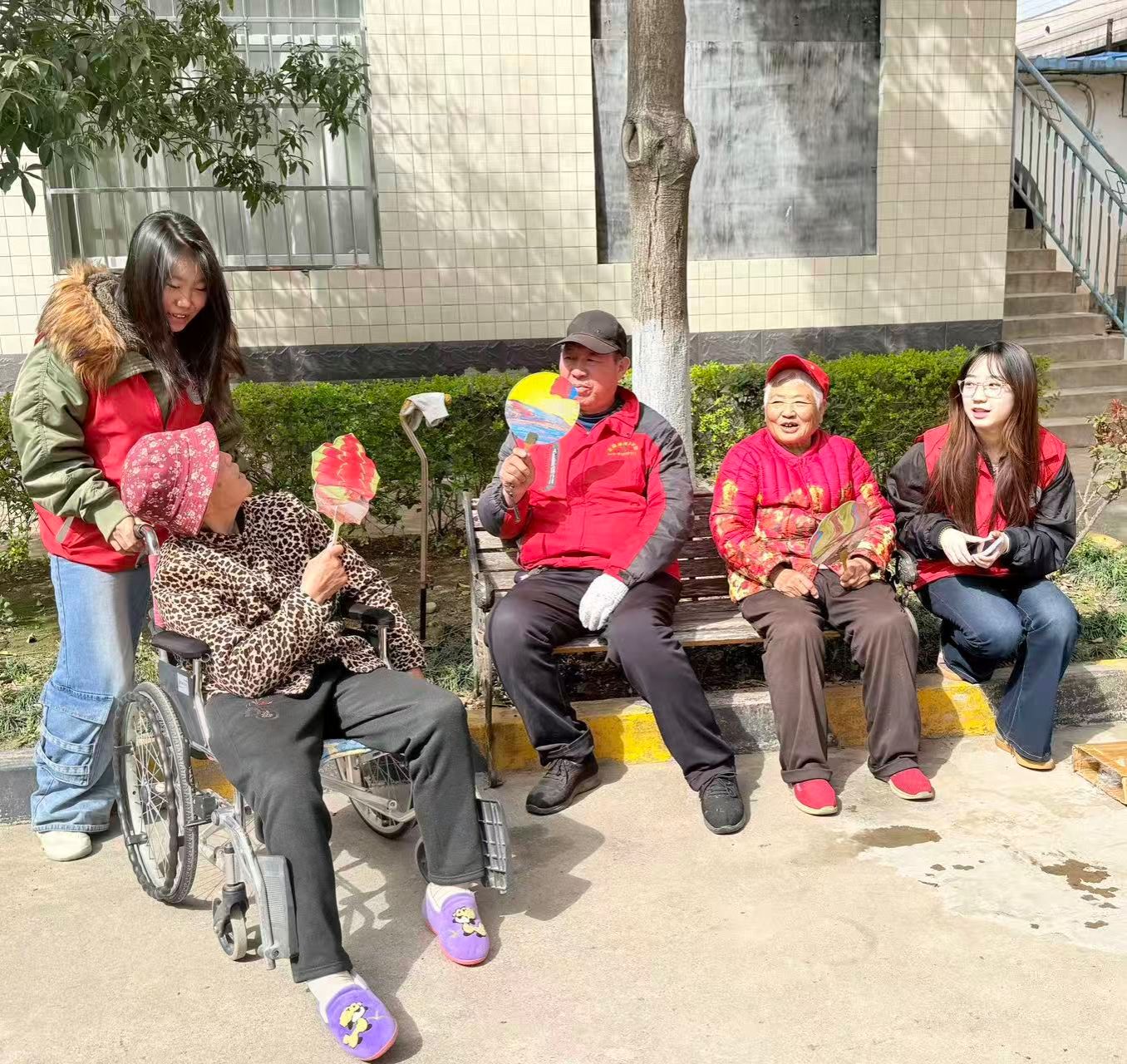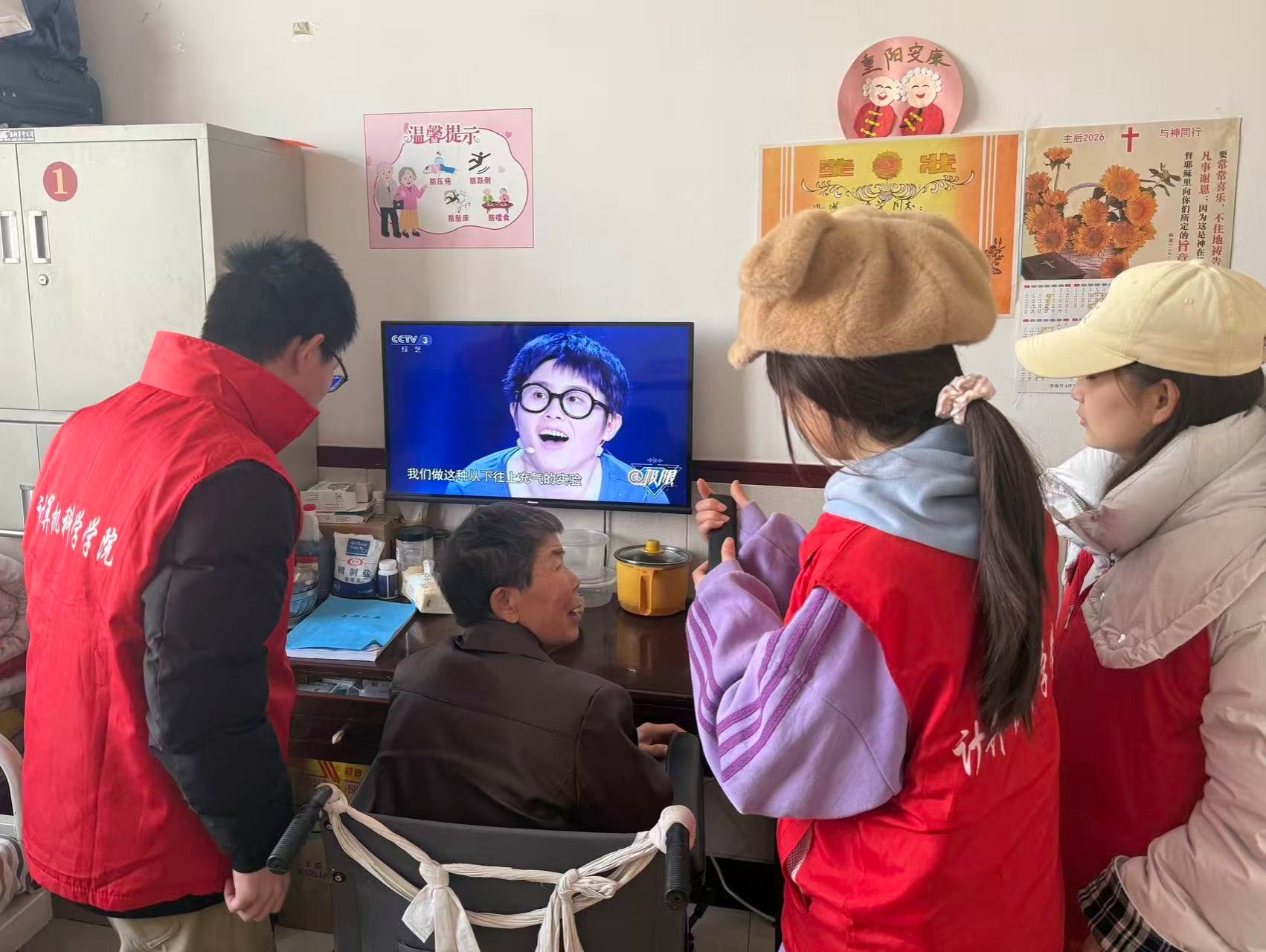 “IT智能帮・银龄时光守护计划”是学院的一项品牌志愿服务活动。身着红色志愿马甲的志愿者们以雷锋同志为榜样,热情满满投入各项服务。他们或悉心搀扶行动不便的老人,协助推送轮椅、乘坐电梯、开门引路;或围坐老人身旁,陪老人闲话家常、看电视,倾听老人们讲述生活趣事与心声;或与老人一起做漆扇手工绘制,在互动创作中为老人带来别样的精神享受。他们还充分发挥计算机专业优势,手把手教老人使用智能手机,耐心讲解视频通话、浏览资讯等实用操作,为老人拍摄照片和视频,并修复一些有纪念意义的老照片,帮助老人们跨越“数字鸿沟”,享受智能科技带来的便利和精神食粮。养老院里处处洋溢着欢声笑语。