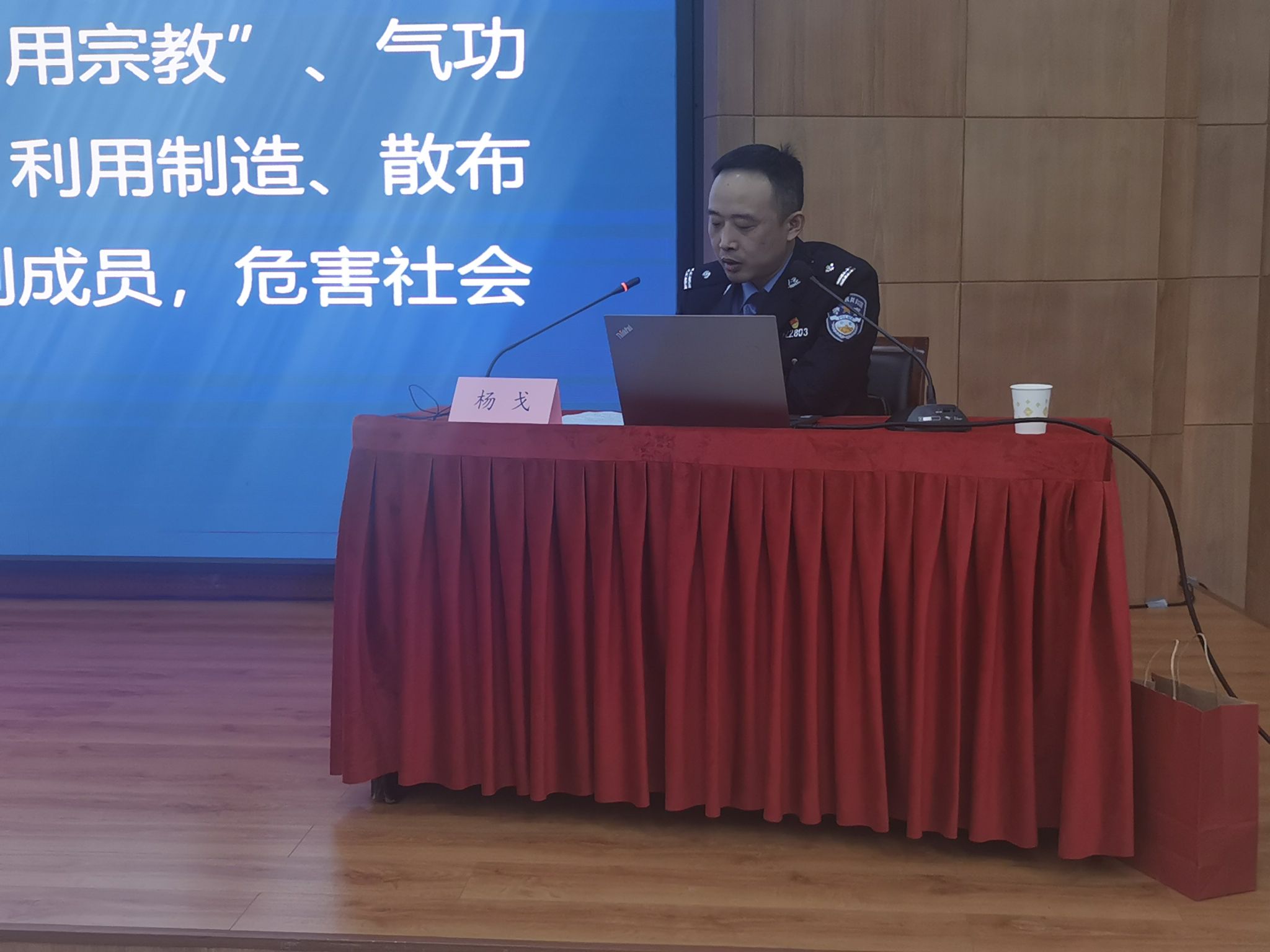 公安临潼分局政保大队杨戈作了题为“建设和谐校园 拒绝邪教侵袭”专题宣讲。他详细介绍了邪教的本质特征、主要类型及现实危害,结合校园典型案例揭示了邪教伪装渗透、蛊惑群众的惯用手法,深刻阐明邪教对个人成长、家庭和谐及校园安全稳定的严重危害。他告诫全体师生一定要崇尚科学、抵制邪教,不断增强对邪教的辨别能力和防范意识,及时报告可疑线索,自觉维护安全文明的校园环境。