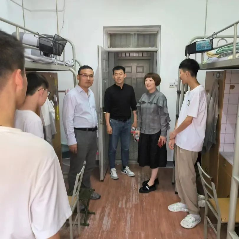 在学生公寓,各位老师查看了宿舍设施,与来自五湖四海的新同学亲切交谈,询问他们来自哪里、有什么困难、能不能适应新的学习生活环境。还略显稚嫩的“萌新们”对老师的到来非常欣喜,他们表示学校环境很好,遇到的老师和同学都很好,从到达西安车站到来到校园迎新点报到直到进入宿舍都得到了老师和志愿者非常热情的帮助,他们非常开心和感动。各位领导和老师叮嘱新同学注意安全,提高防骗意识,尽快熟悉新的环境,制定好大学生活学习规划,有任何疑问和困难及时向辅导员老师反映,学院和学校一定会及时帮助大家解决问题。