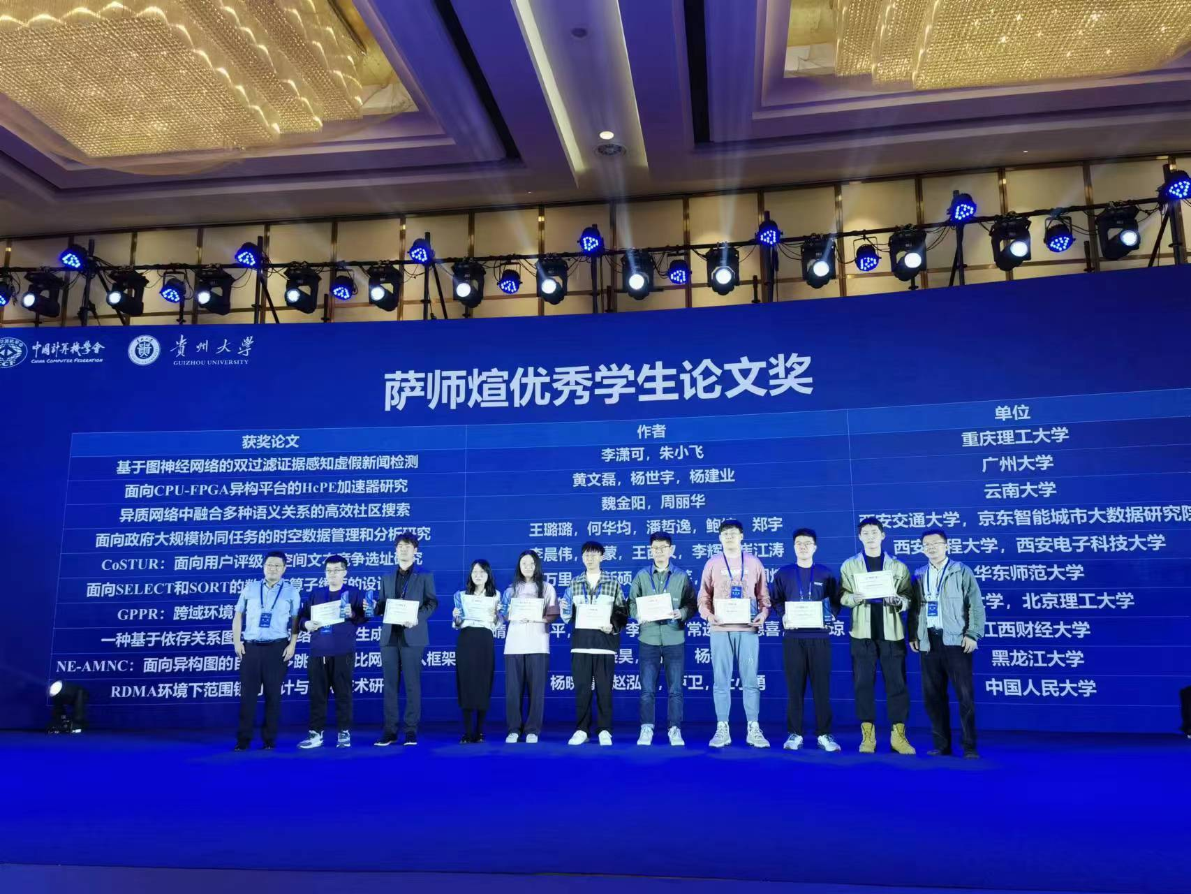 我们王蒙副教授和研究生李晨伟获中国数据库领域最高学术会议优秀论文奖