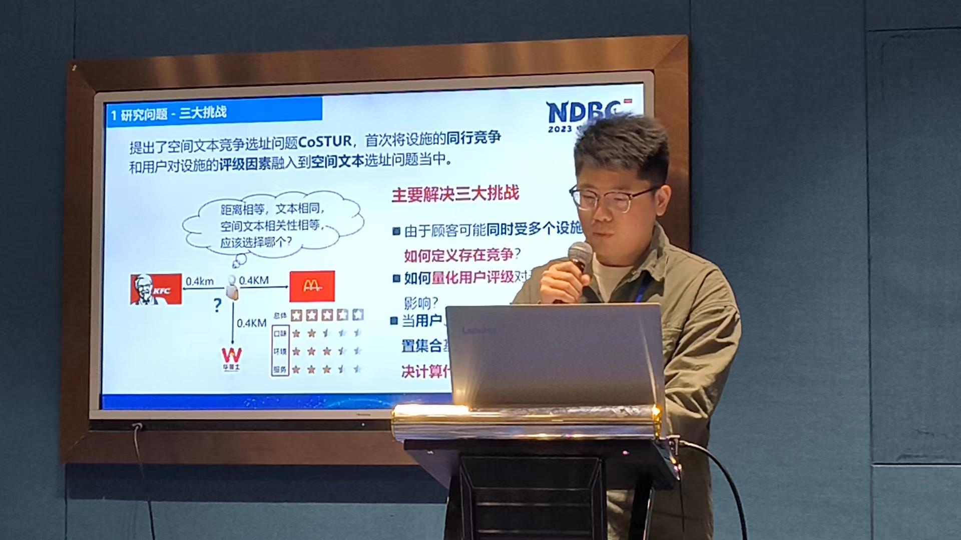 近期,我们服装设计智能化重点实验室王蒙副教授与研究生李晨伟同学等人共同撰写的题为《CoSTUR:面向用户评级的空间文本竞争选址研究》学术论文荣获第40届CCF中国数据库学术会议(NDBC 2023)“萨师煊优秀学生论文奖”,研究生李晨伟同学在大会做论文报告进行学术分享。NDBC大会是由中国计算机学会(CCF)主办的国内数据库领域最高学术会议,该奖是为纪念已故中国数据库领域泰斗萨师煊先生而设立。