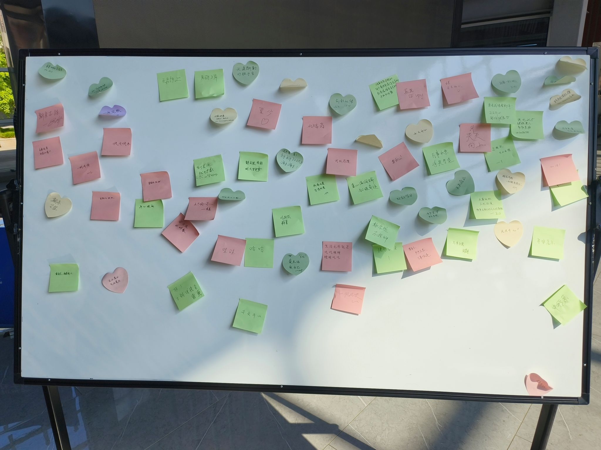 此次活动吸引了众多同学的参与。大家纷纷在便利贴上写下了自己想说的话,如“努力拼搏,我要继续努力成为更好的自己!”、“爱自己,爱生活”、“希望家人朋友永远健康幸福”等各式各样真挚的语言写出了对自己、对他人美好的祝愿,同时宣泄了积压在心中的忧愁、苦闷情绪、疏导了压力。随着老师们的参与,现场的氛围被推上了高潮,师生互动祝福,让真诚的爱弥漫全场。