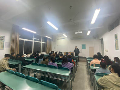首先,围绕着大一第二学期的新学习,李维对照课表分析了新学期课程体系,讲解了各门课程的主要内容及其重要性。例如离散数学作为基础学科课程,在考博的时候会考;概率论与数理统计对数据分析方向尤为重要,并且考研中有相应的题目。其次,贴合部分学生的需求,李维分析了计科20级01班上学期挂科情况,从复习难易程度和学分获得等方面解读了补考与正考的区别。例如,正考会有一定的平时分,补考则没有平时分,并且没有老师进行详细辅导。最后,李维为同学答疑。一位同学说英语很难,李维带着学生一起分析当前学习方式、考试困惑以及如何复习。为了更好地拉进与学生的距离,李维询问了班级学生爱好与感兴趣的领域。