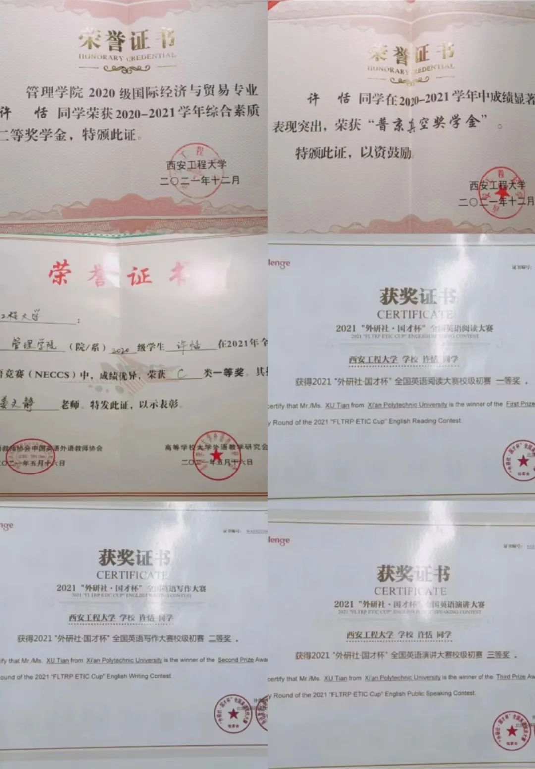 5、2021年获全国大学生英语竞赛省级一等奖;