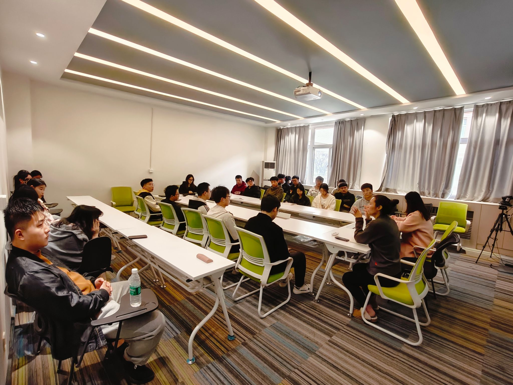 首先,张凯兵就学习管理、事务安排、形象塑造、心态调整、调剂方法等方面进行了指导并提出建议,他强调面试时要保持心态稳定,沉稳作答,要充分展现自己虚心求教、乐观向学的态度。朱瑾以往届考研学生为实例,提醒大家要踏实务实,加强专业技能知识的复习和实践项目的复盘,形成知识系统思维,做到融会贯通,还要提前了解意向导师的研究方向,做好学业规划。刘露结合自身复试经验,从准备专业课笔试,提升英语应用能力、专业知识能力、综合素质能力等方面分享了备考经验。她鼓励大家要保持信心、拒绝焦虑,但也不可掉以轻心,备考复习要计划周全、扎实推进。左温慧就面试简历、礼仪着装、项目经历复盘归纳等方面进行了技巧介绍。在答疑环节,同学们就复试流程、高效调剂、时间节点等方面进行了提问,与会老师一一予以解答,并预祝所有考研学生成功上岸,金榜题名。