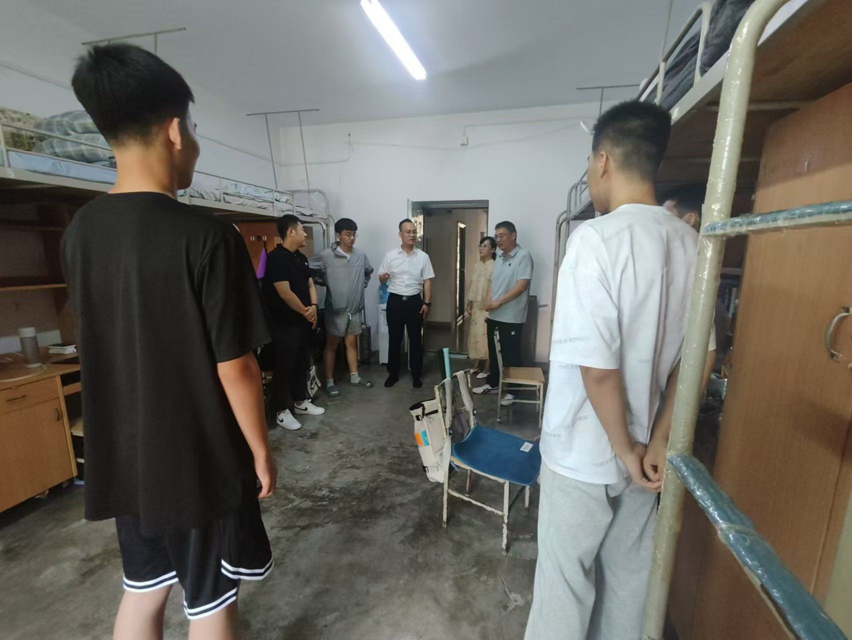 “你来自哪里?高中有没有住过校?饮食习惯吗?还存在什么困难?……”每到一个宿舍,学院领导都对新生耐心交谈,提醒学生要主动学习、加强锻炼,宿舍集体要相互关爱,处理好同学关系……让新生们感受到了家的温暖。同时,叮嘱新生们要严格遵守学校要求,保持个人身心健康,养成良好的生活卫生习惯,共同营造安全有序的校园环境。此外,要特别注意防范各种诈骗,看好自己的钱袋子,遇到困难及时联系辅导员老师,学院一定会尽力解决。