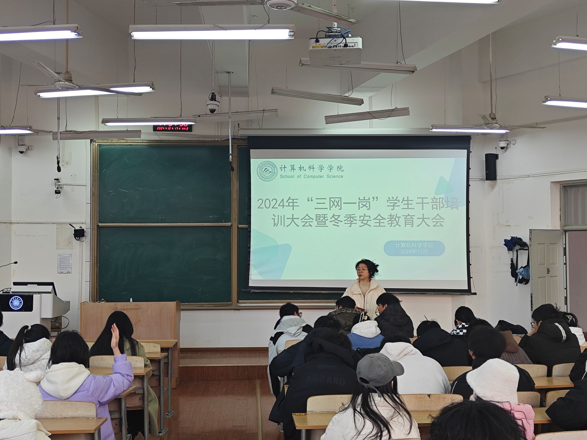 随着冬季来临,天气转冷,当下学生安全稳定工作尤为重要。为了堵塞安全漏洞,筑牢冬季安全防线,保护学生人身财产安全,守住学生稳定安全底线,9499www威尼斯各年级于12月10日到15日召开“一站式”学生社区冬季校园安全教育暨学生安全员培训会。各年级辅导员、学院心理辅导员和学生安全员信息网成员参加了培训。