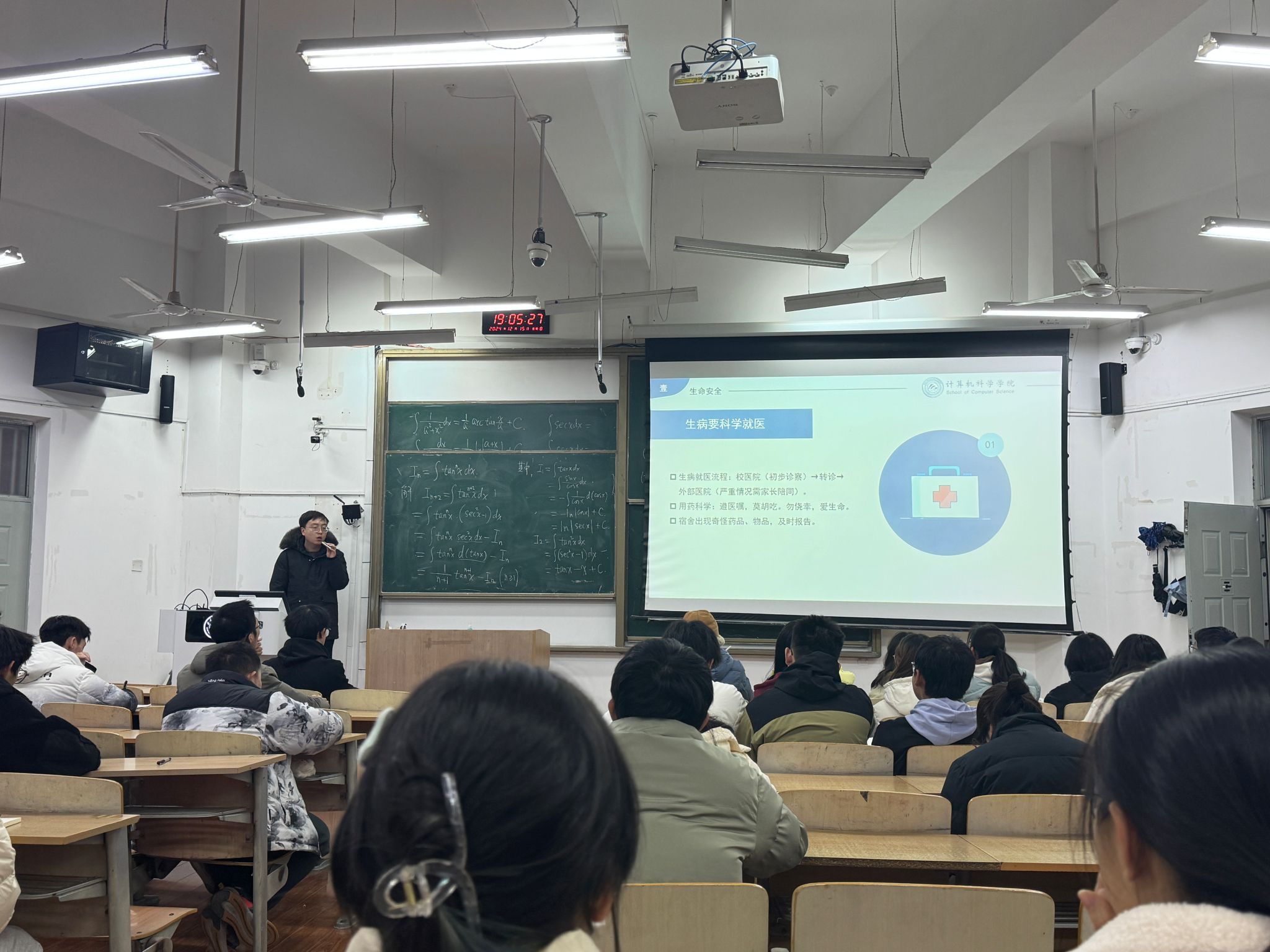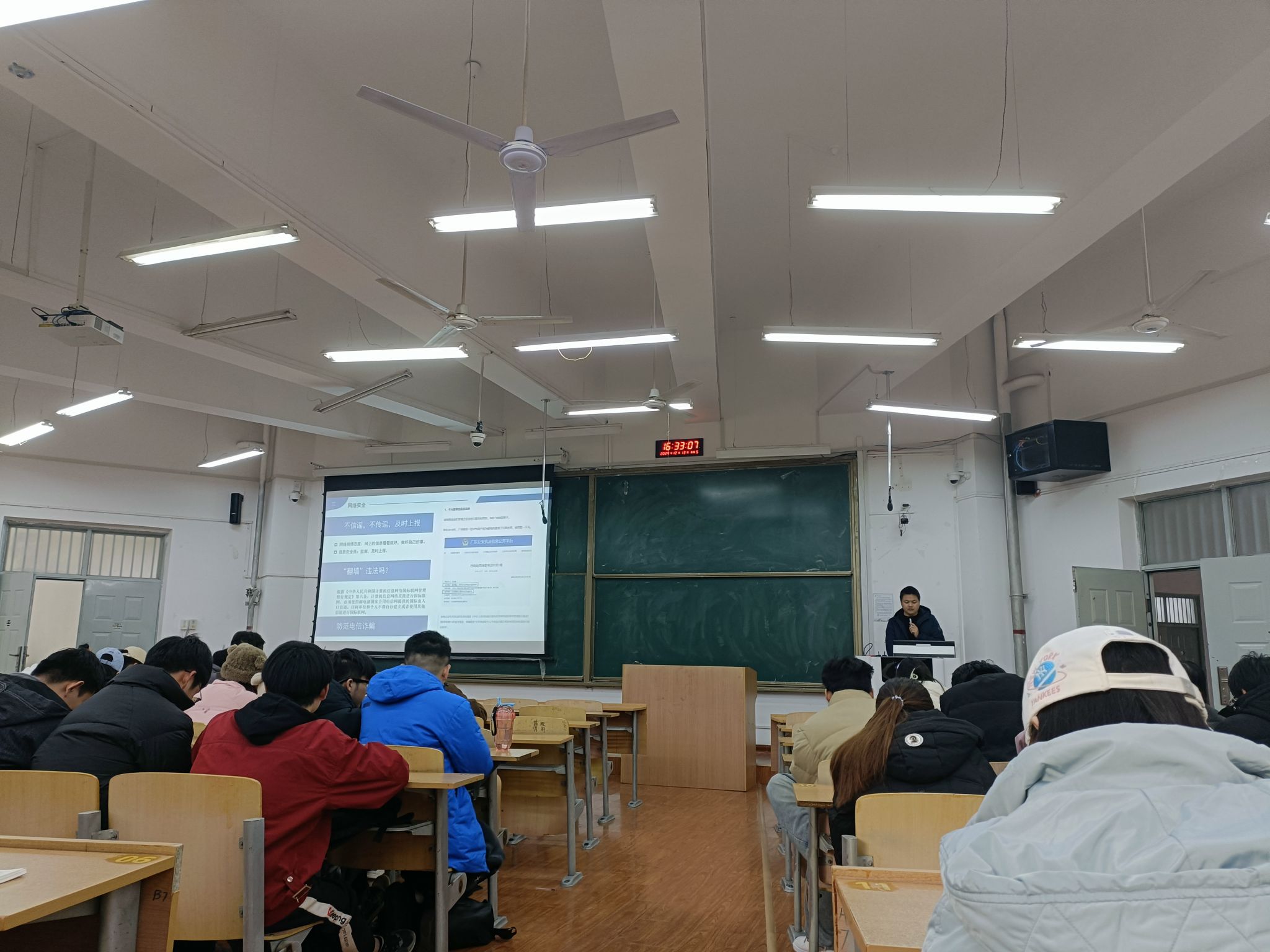 在培训会上,各年级辅导员围绕冬季校园安全薄弱环节和强化薄弱环节的紧迫性向学生安全员做出了详细讲解,并提出了具体要求。本次培训涵盖了生命安全、交友安全、心理安全、财产安全、消防安全、网络安全、交通安全等多个维度,辅导员通过活生生的案例描述、详实的数据分析、相关法律法规和校纪校规的解读,为学生上了一堂深刻实用的安全教育课。在心理健康方面,心理辅导员程帅着重强调了安全员在学生心理健康维护中的重要作用,鼓励同学们主动学习心理健康知识,树立生命最可贵的理念,增强发现问题的敏锐性,勇于向需要帮助的同学伸出援手,遇到风险度较高的问题要第一时间向辅导员报告。各年级辅导员就突发事件的应急处理流程向大家做了详尽讲解,特别提醒安全员们在面对紧急情况时,要第一时间联系辅导员,保持冷静、迅速反应、有效行动。辅导员还就诚信考试和学生的人际交往等问题和与会学生进行了讨论,并强调了有关注意事项。
