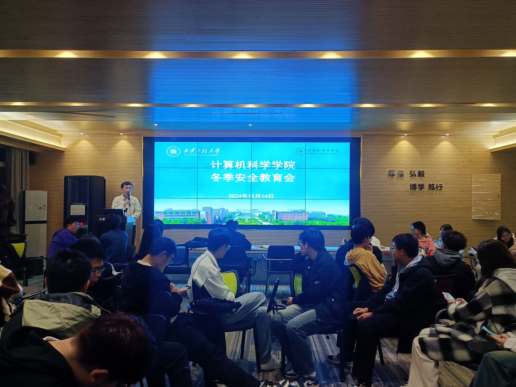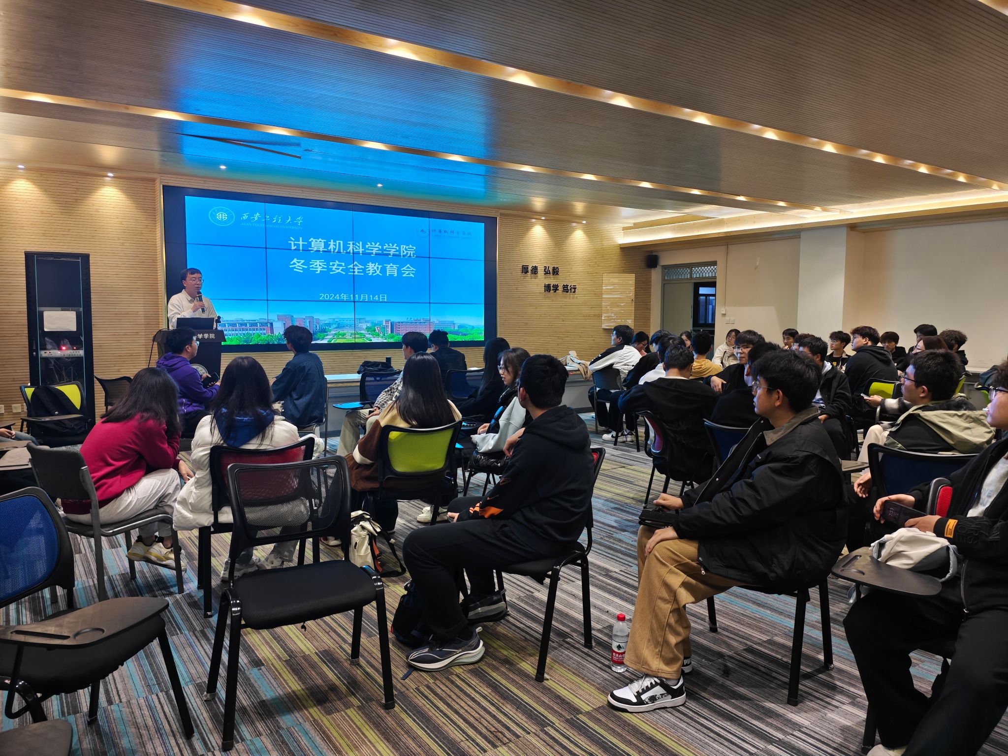 数日阴雨,气温骤降,凛冬已至。为了提高同学们冬季安全意识,增强防范冬季各类安全问题的意识。11月14日,9499www威尼斯召开冬季安全教育会,向同学们普及冬季安全知识,营造安全的校园环境。会议由24级辅导员刘宇哲主持。